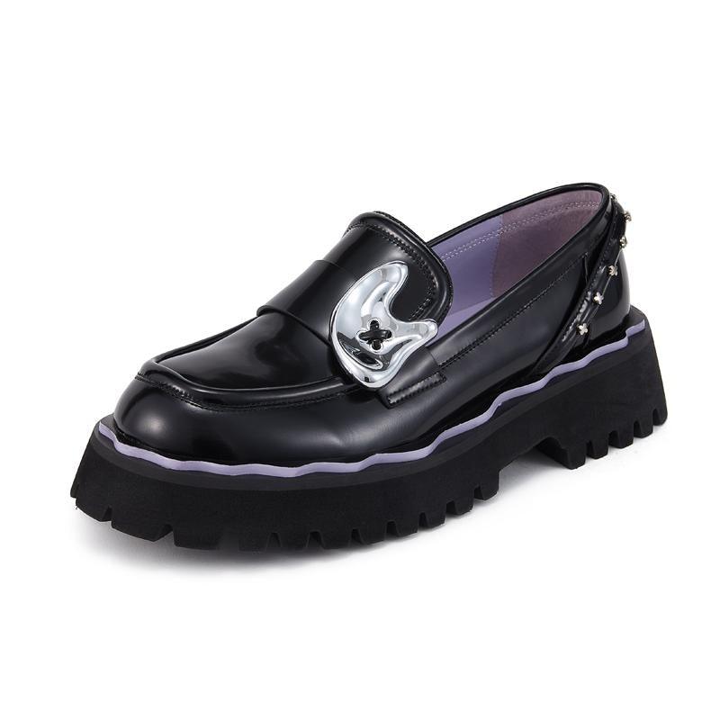 Herlian Logo Buckle Thick Sole Leather Loafer Black