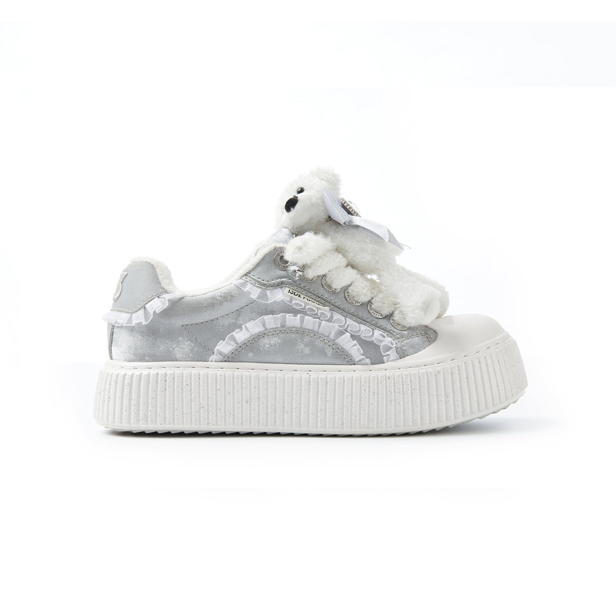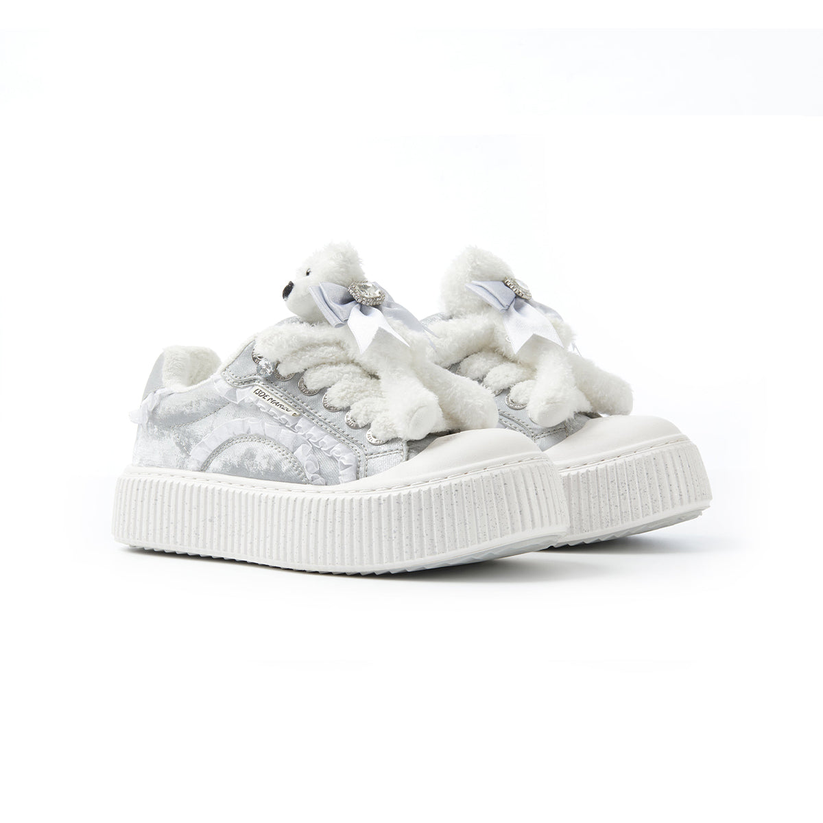13De Marzo Plush Bear Lace Biscuits Sneaker Silver