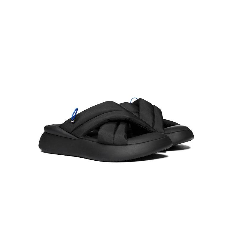 Lost In Echo Leather Strap Buckle Fluffy Slides Black