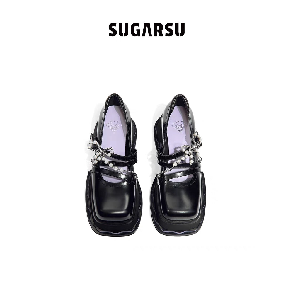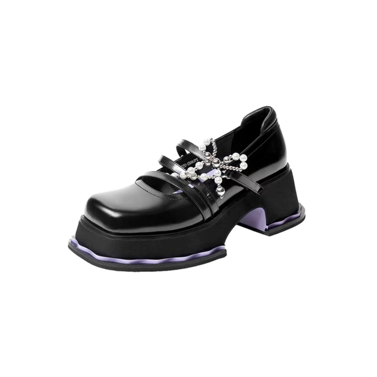 SugarSu Pearl Chain Bow Knot Mary Jane Black
