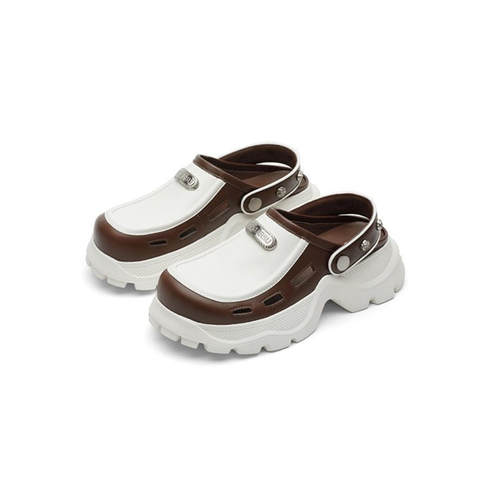 SugarSu Two-Way Hollow Out Rose Studs Mules Brown