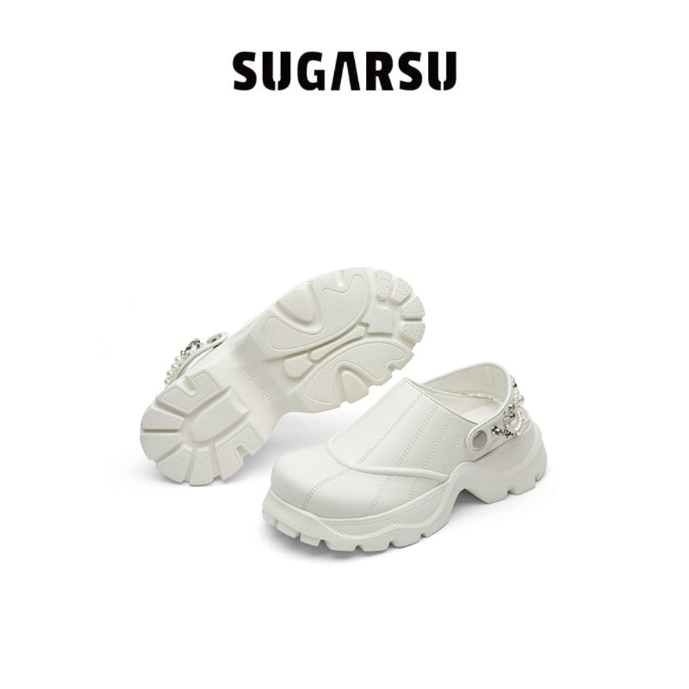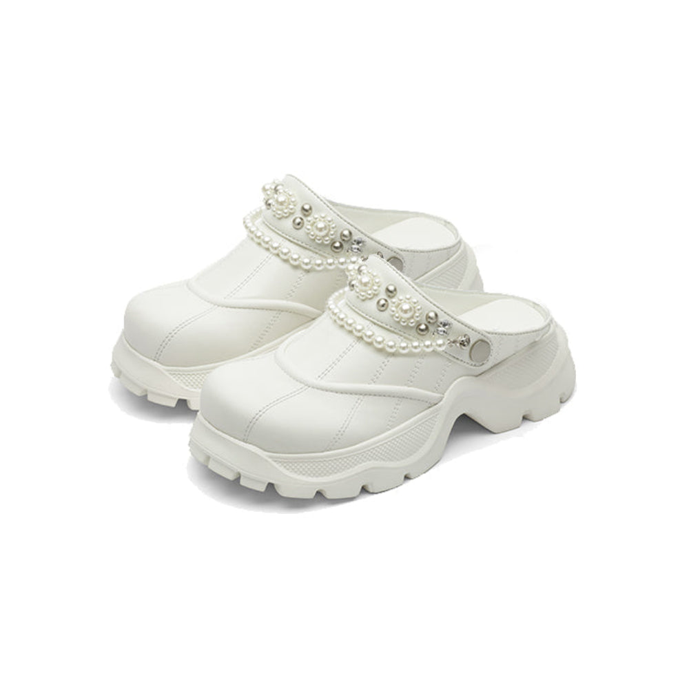 SugarSu Pearl Chain Decorated Tip-Tilt Clog Mules White
