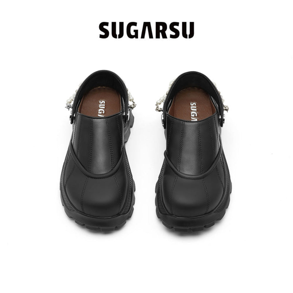 SugarSu Pearl Chain Decorated Tip-Tilt Clog Mules Black