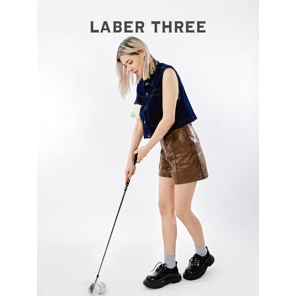 Lost In Echo Round Toe Thick-Soled Heel Leather Shoes Black