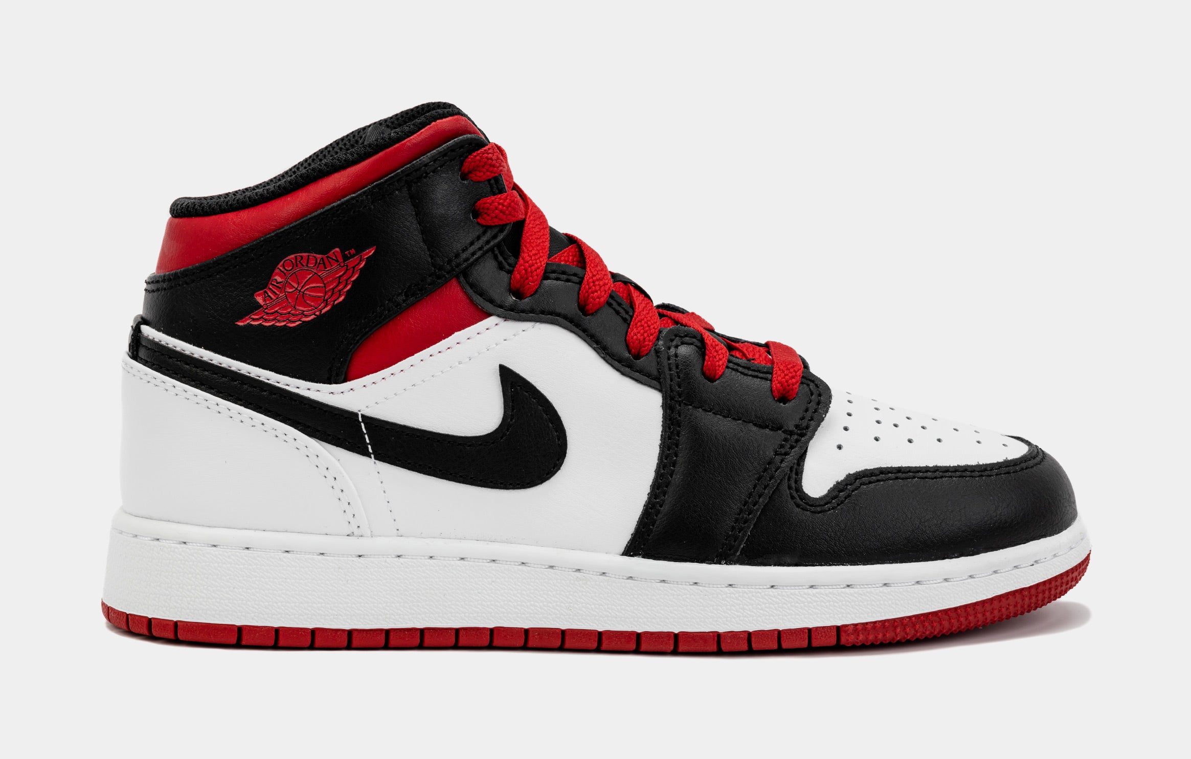 Air Jordan 1 Retro Mid Gym Red Grade School Lifestyle Shoes (Black/Red)