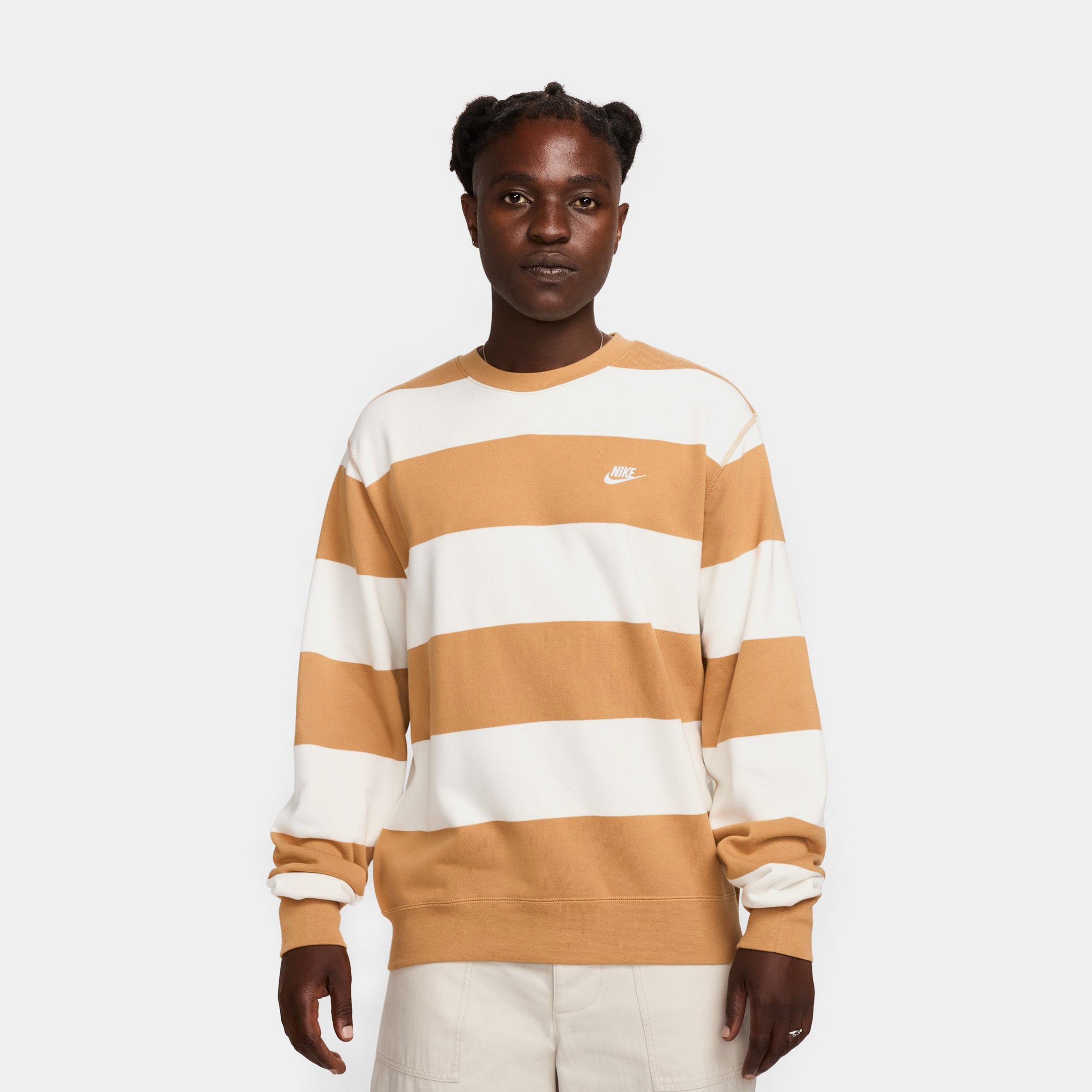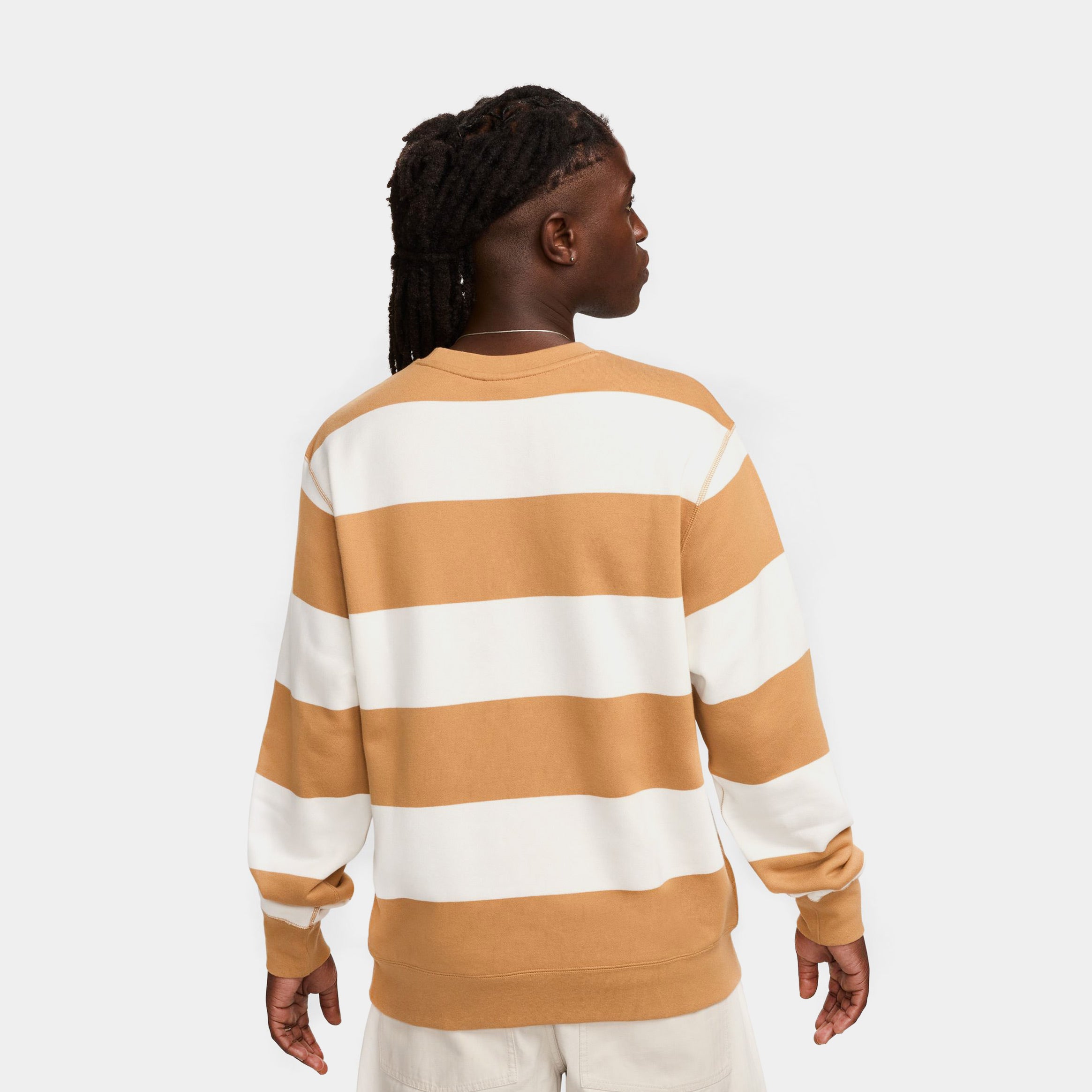 Club Fleece Striped Heavyweight Mens Crewneck (Brown/White)