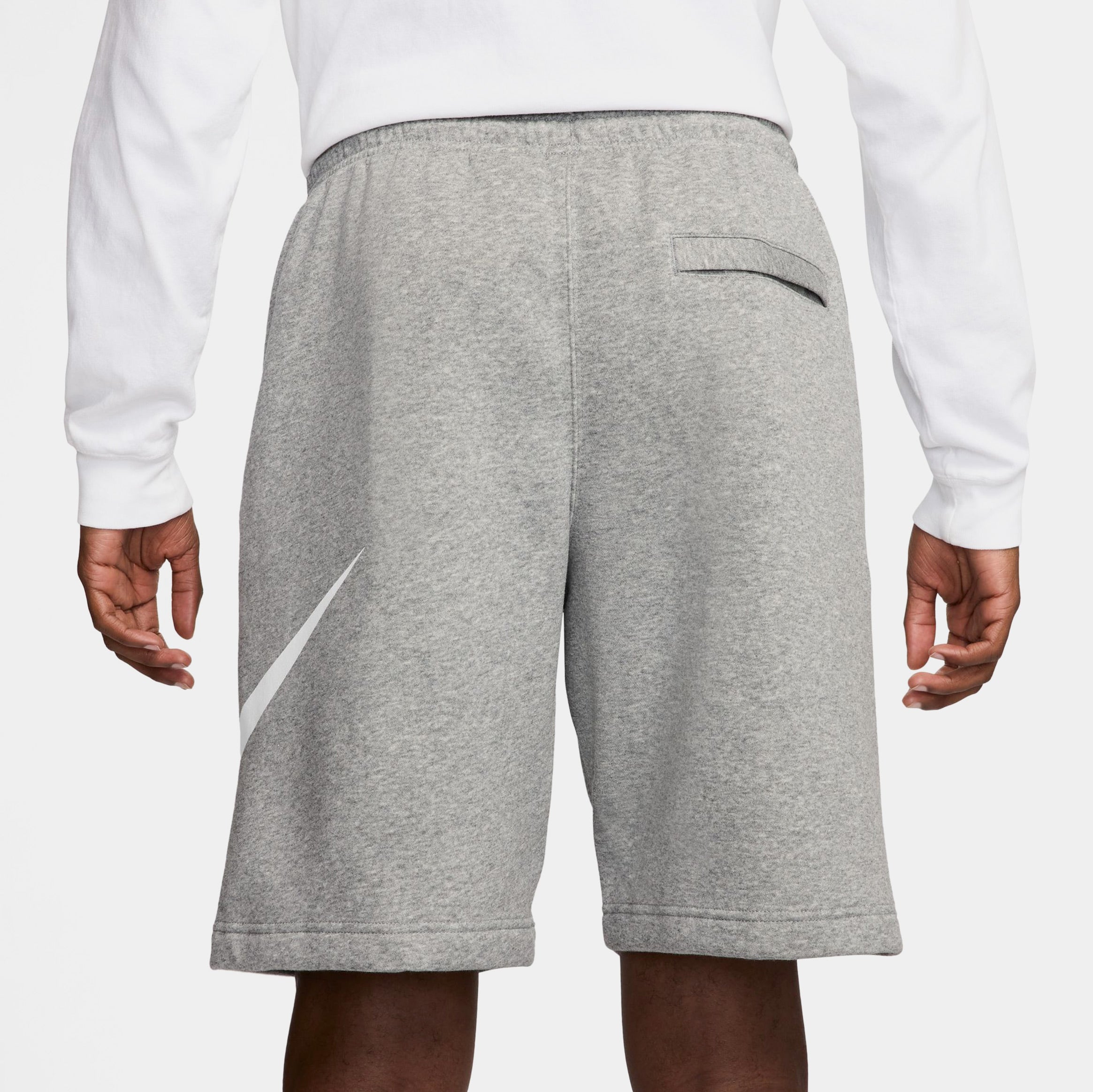 Club Fleece Swoosh Graphic Mens Shorts (Dark Grey Heather/Light Grey/White)