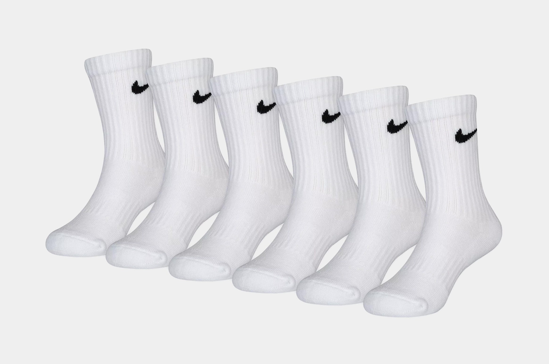 Dri Fit 6 Pack Logo Crew Preschool Socks (White)