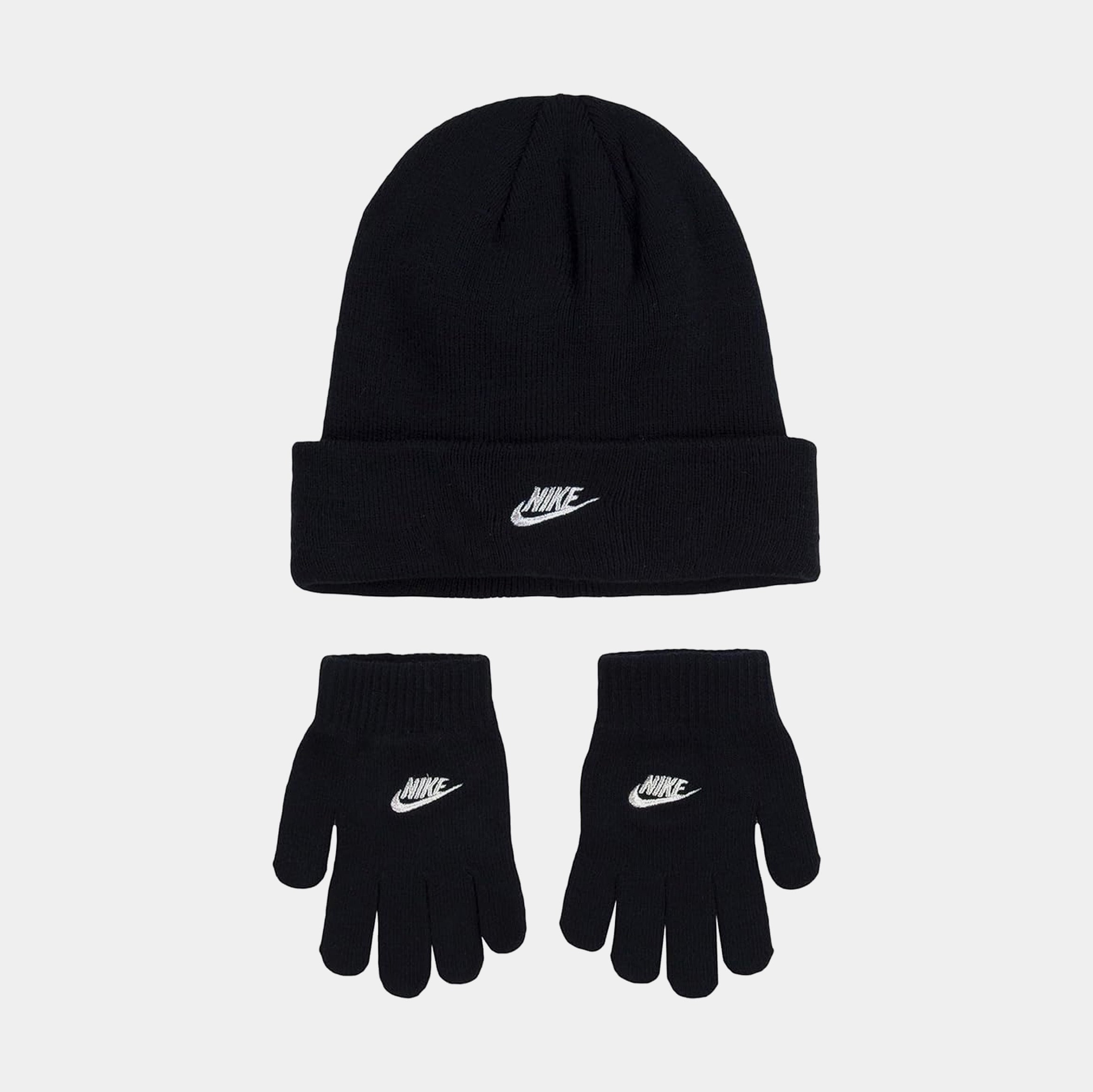 Futura Beanie and Glove Two Piece Grade School Set (Black/White)