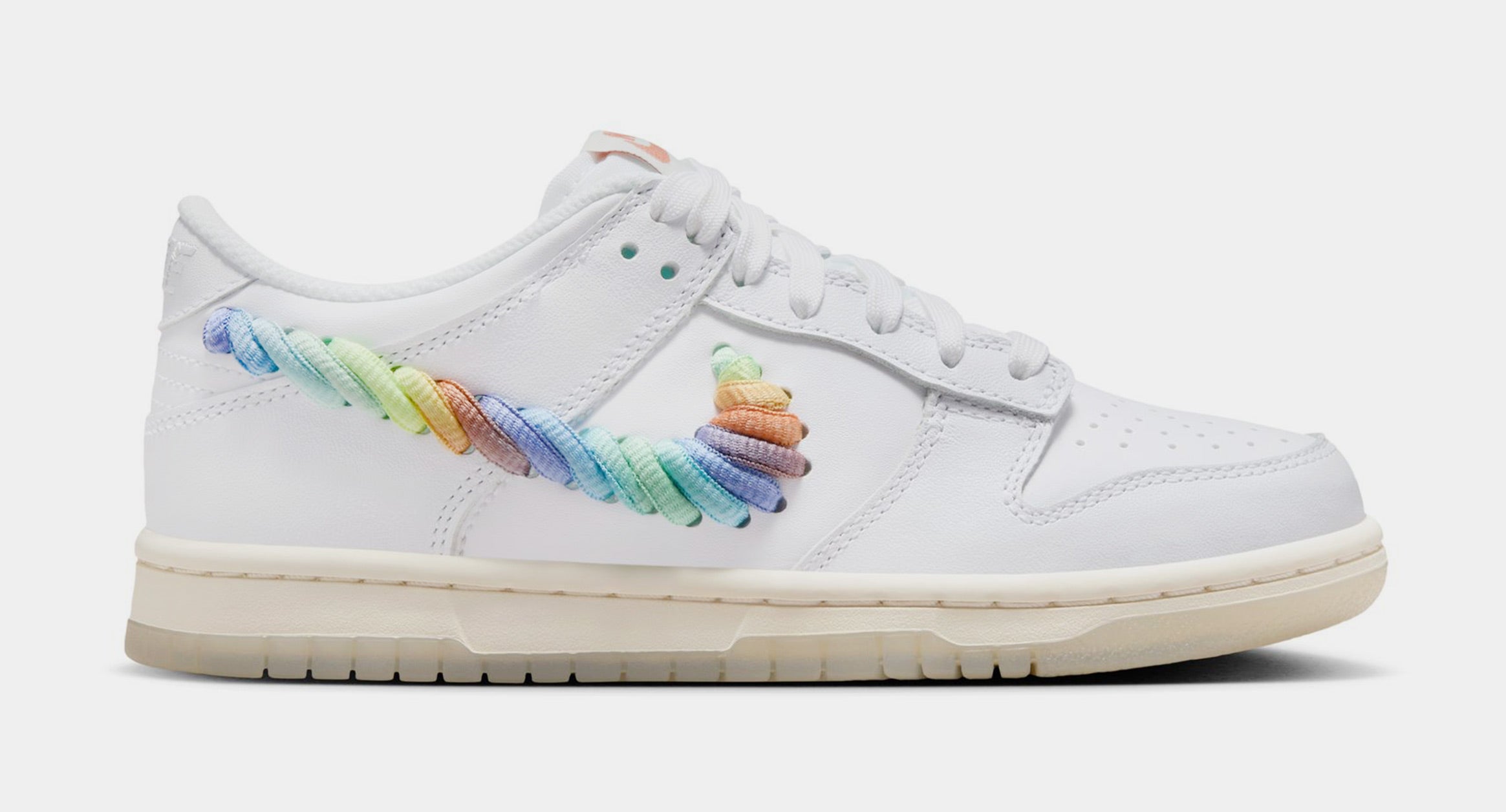 Dunk Low SE Rainbow Swoosh Grade School Lifestyle Shoes (White/Multi Color/Dark Pony/Light Silver)