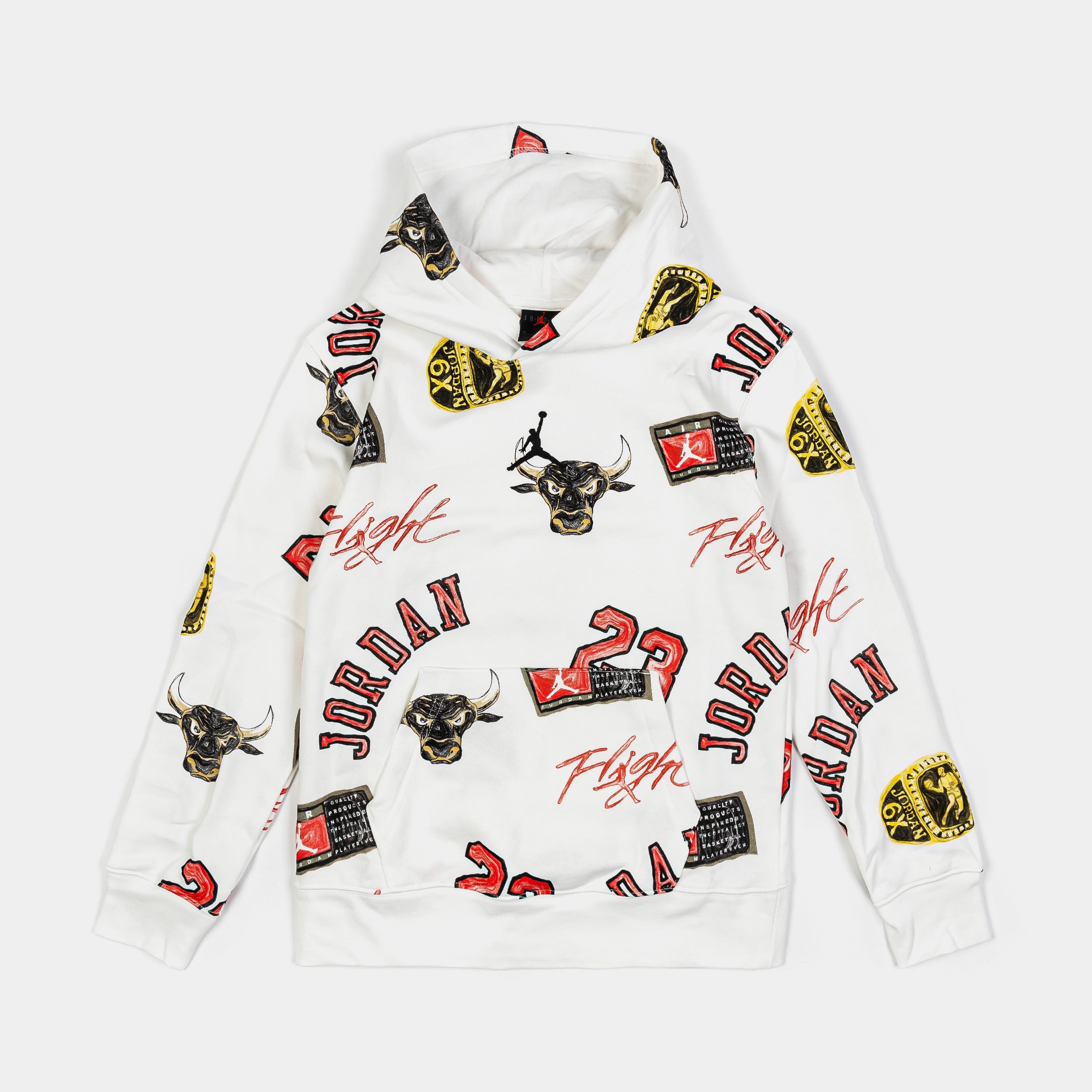 All Over Print Fleece Pullover Grade School Hoodie (Natural/Red)