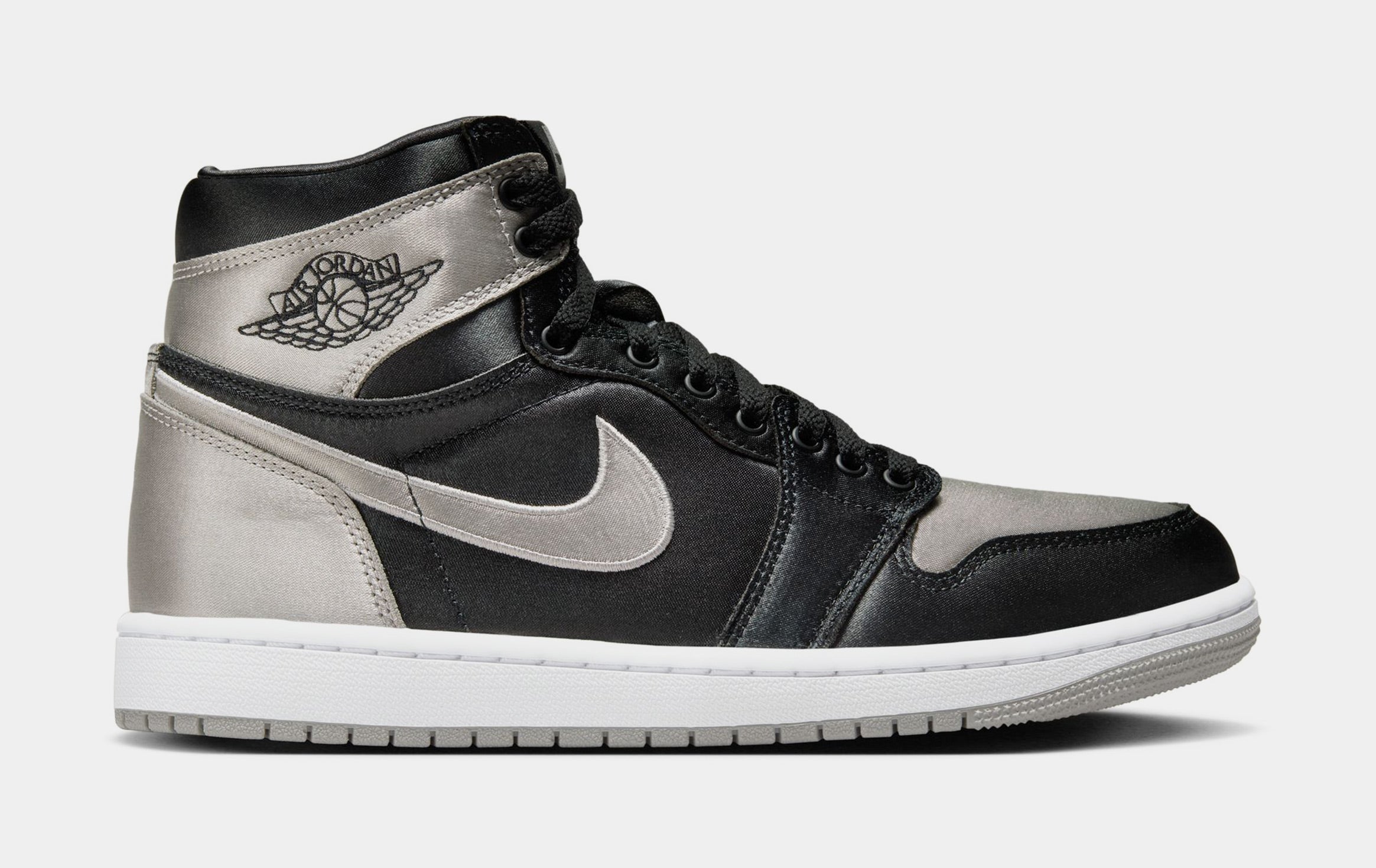 Air Jordan 1 Retro High OG Satin Shadow Womens Lifestyle Shoes (Black/Medium Grey/White) Final Sale
