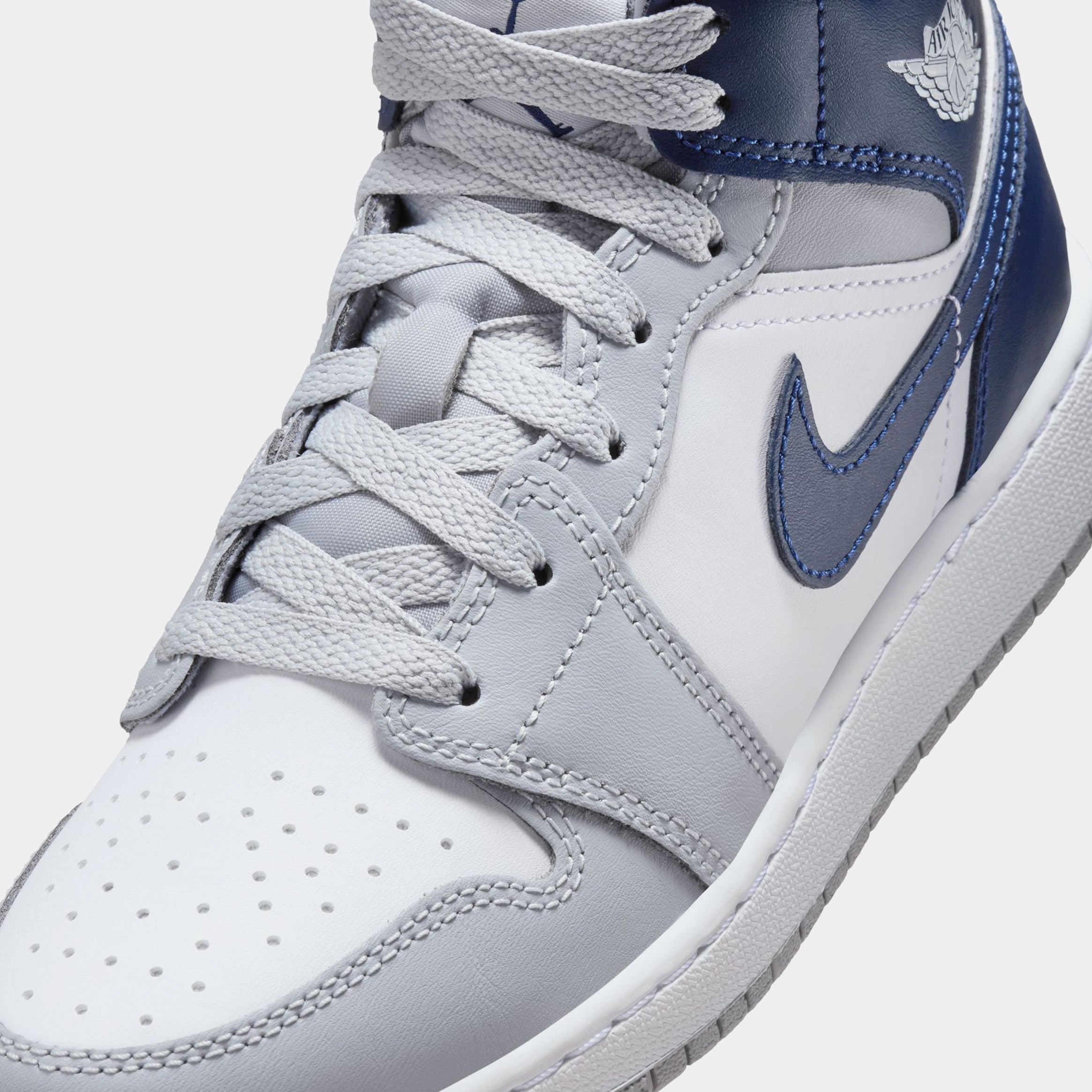 Air Jordan 1 Retro Mid Grade School Lifestyle Shoes (White/Wolf Grey/Midnight Navy)