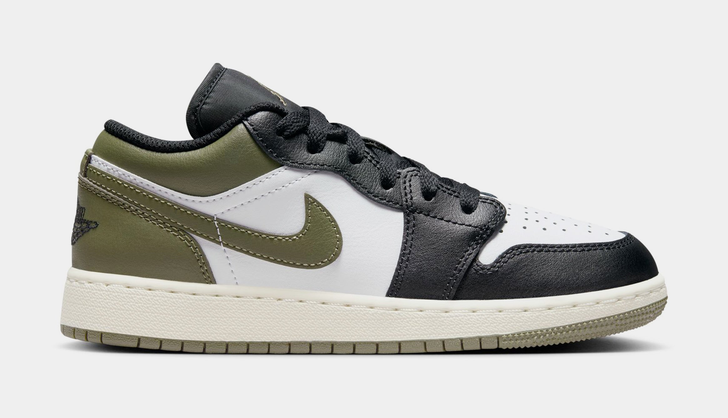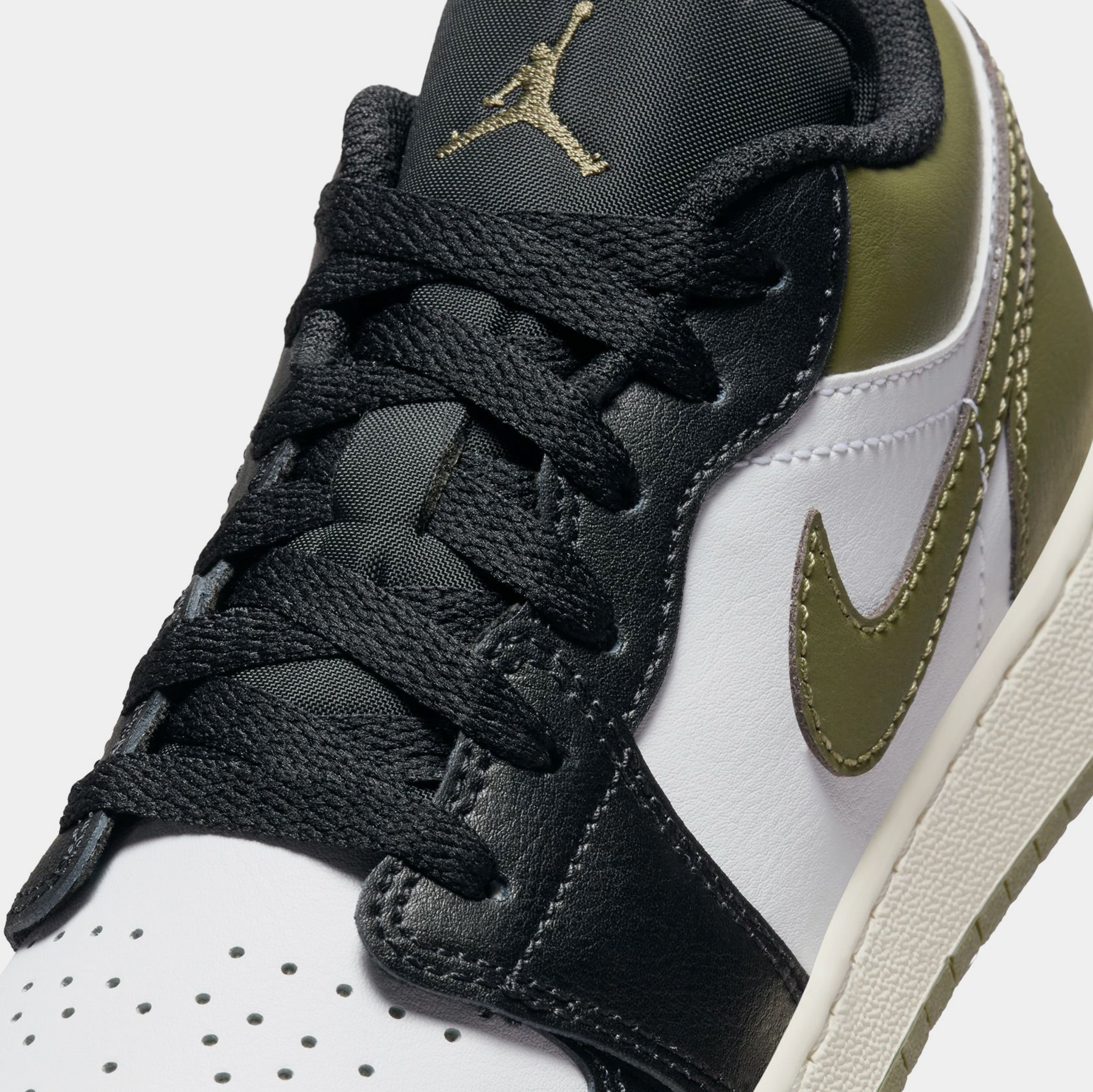 Air Jordan 1 Low Black Toe Medium Olive Grade School Lifestyle Shoes (Black/Medium Olive/White)