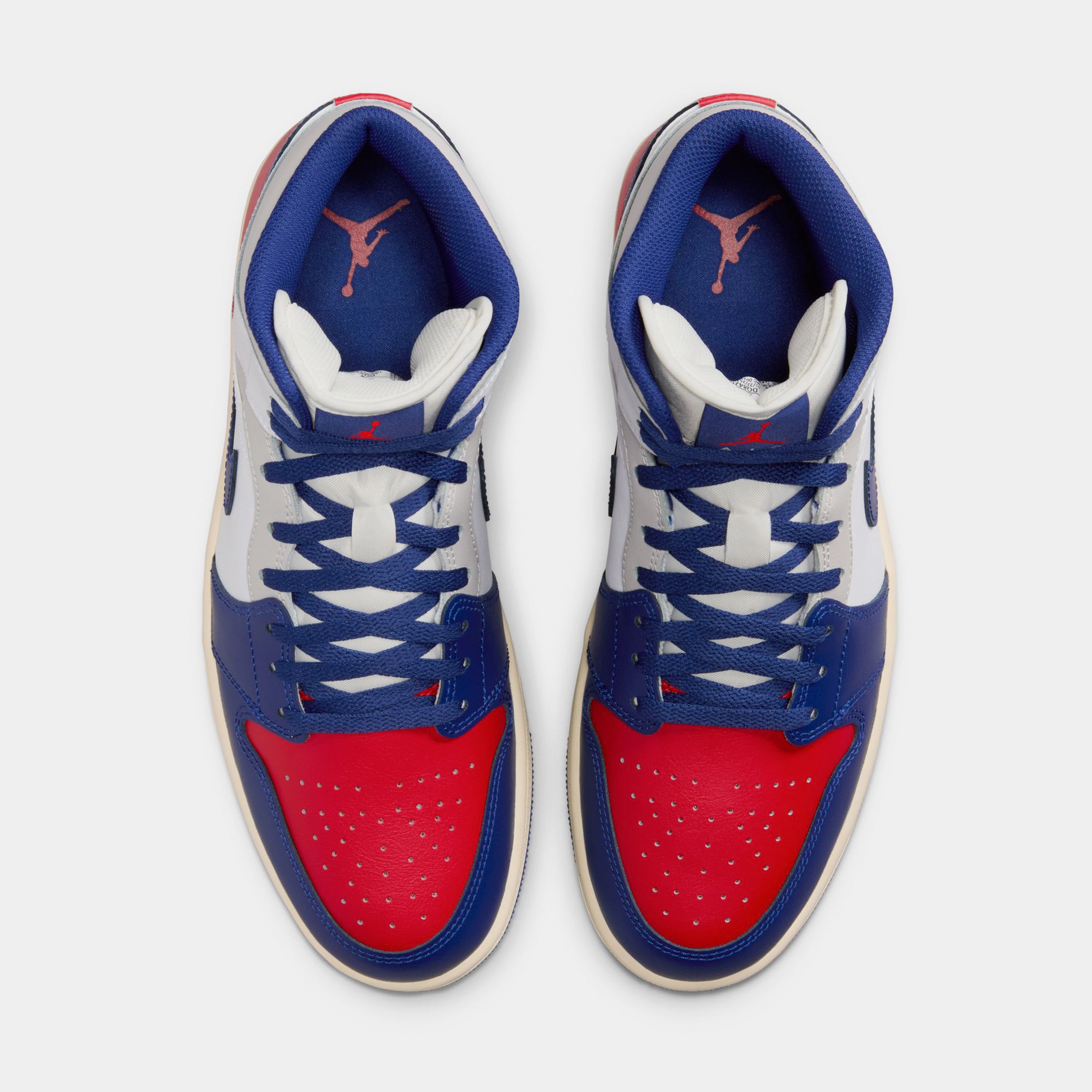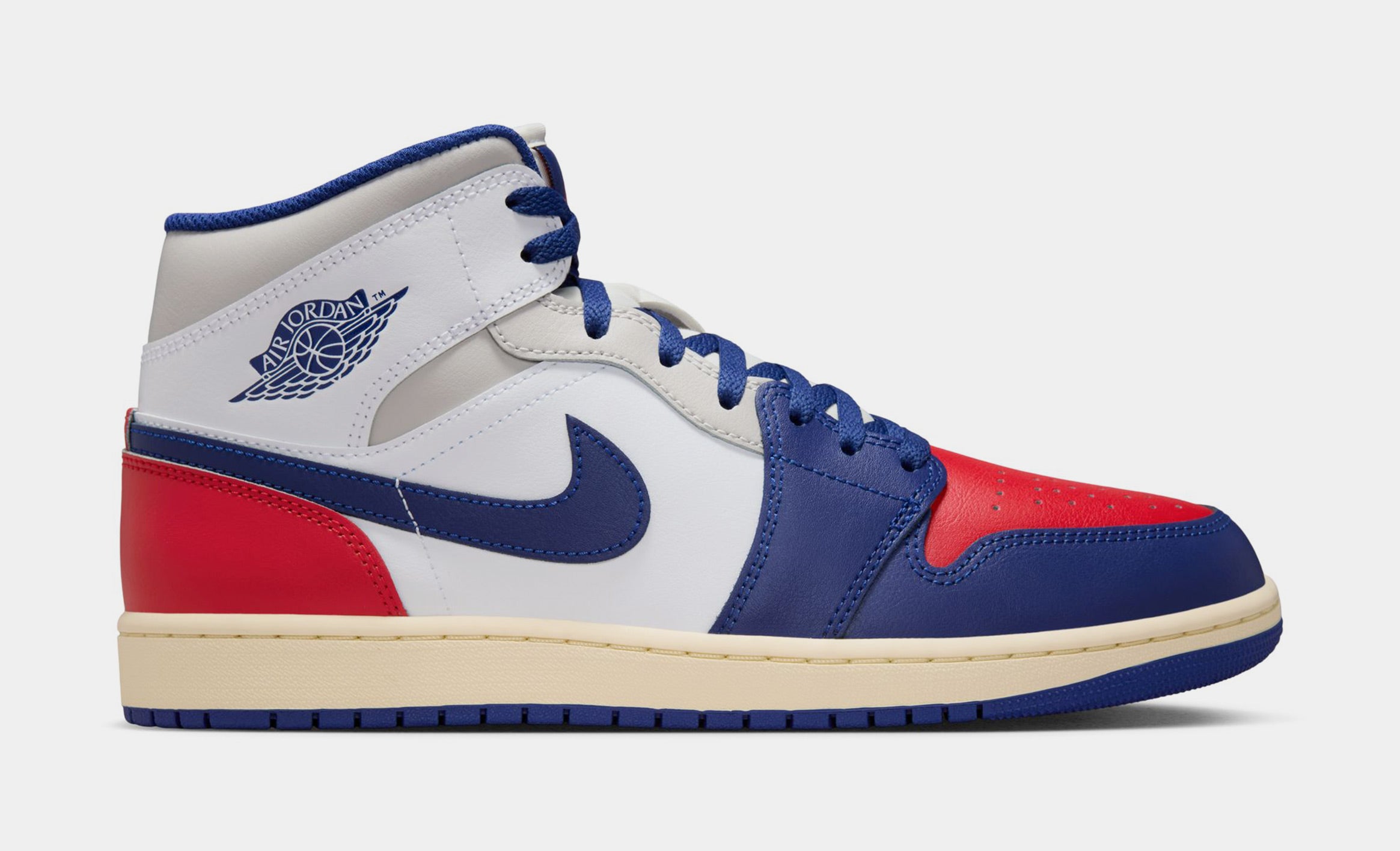 Air Jordan 1 Mid Mens Basketball Shoes (White/Deep Royal Blue/University Red)