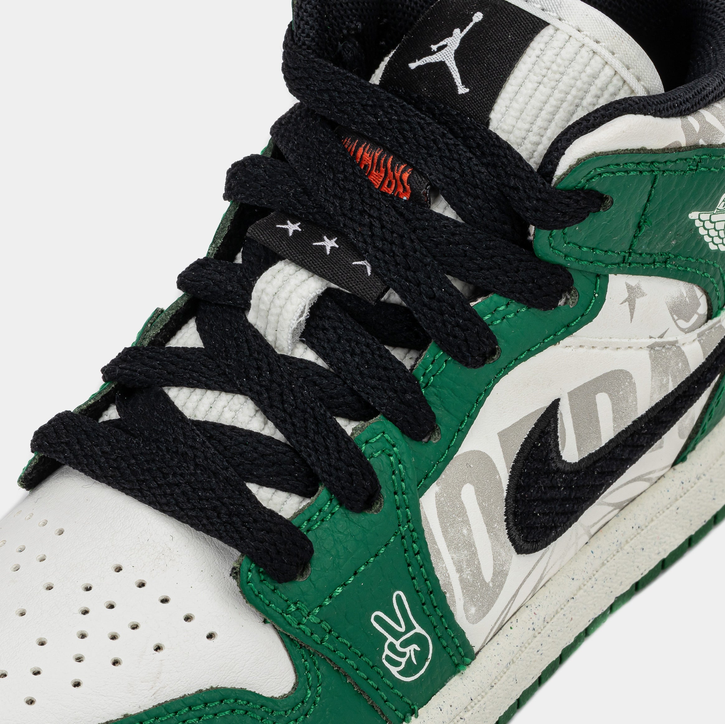 Air Jordan 1 Mid SE Preschool Lifestyle Shoes (White/Green)