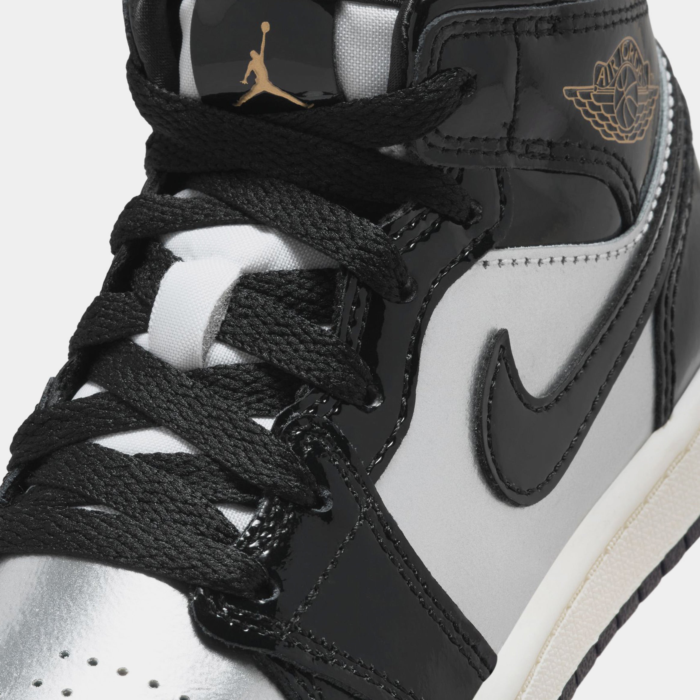 Air Jordan 1 Mid SE Preschool Lifestyle Shoes (Black/Metallic Gold/Metallic Silver)