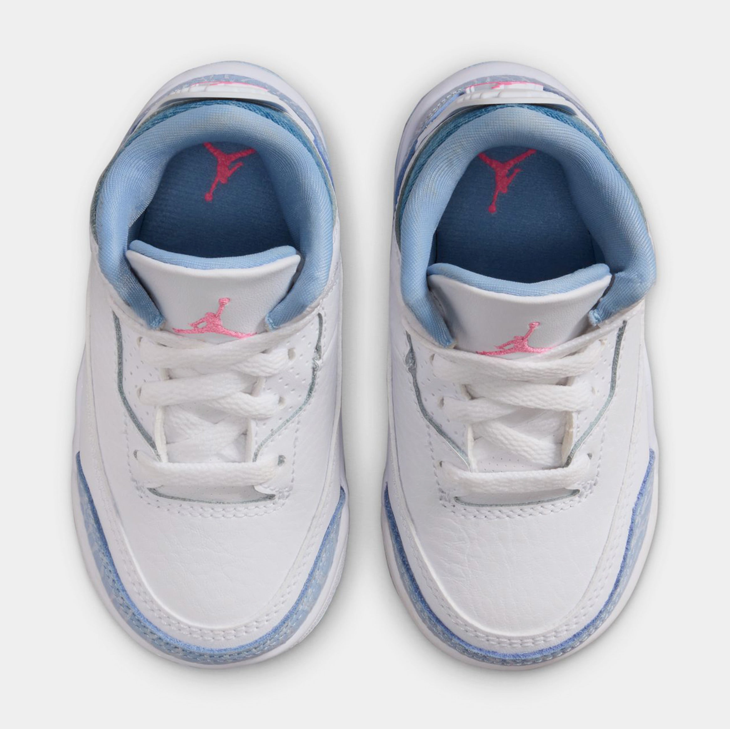 Air Jordan 3 Retro Cobalt Bliss Infant Toddler Lifestyle Shoes (White/Cobalt Bliss/Football Grey/Pink Glow)