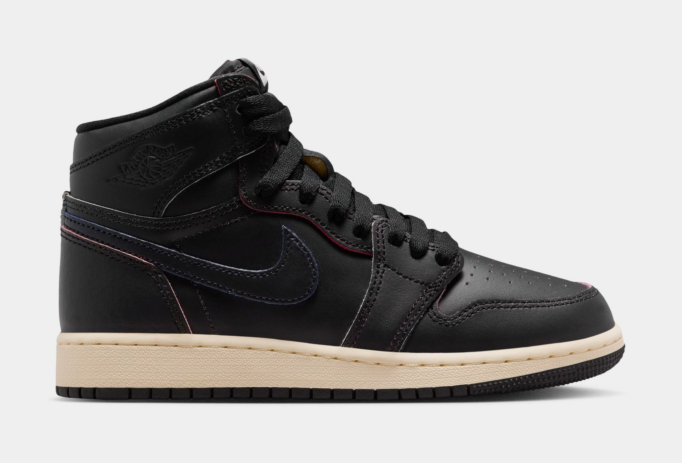 Air Jordan 1 Retro High OG Black and Muslin Grade School Lifestyle Shoes (Black/Black Muslin)