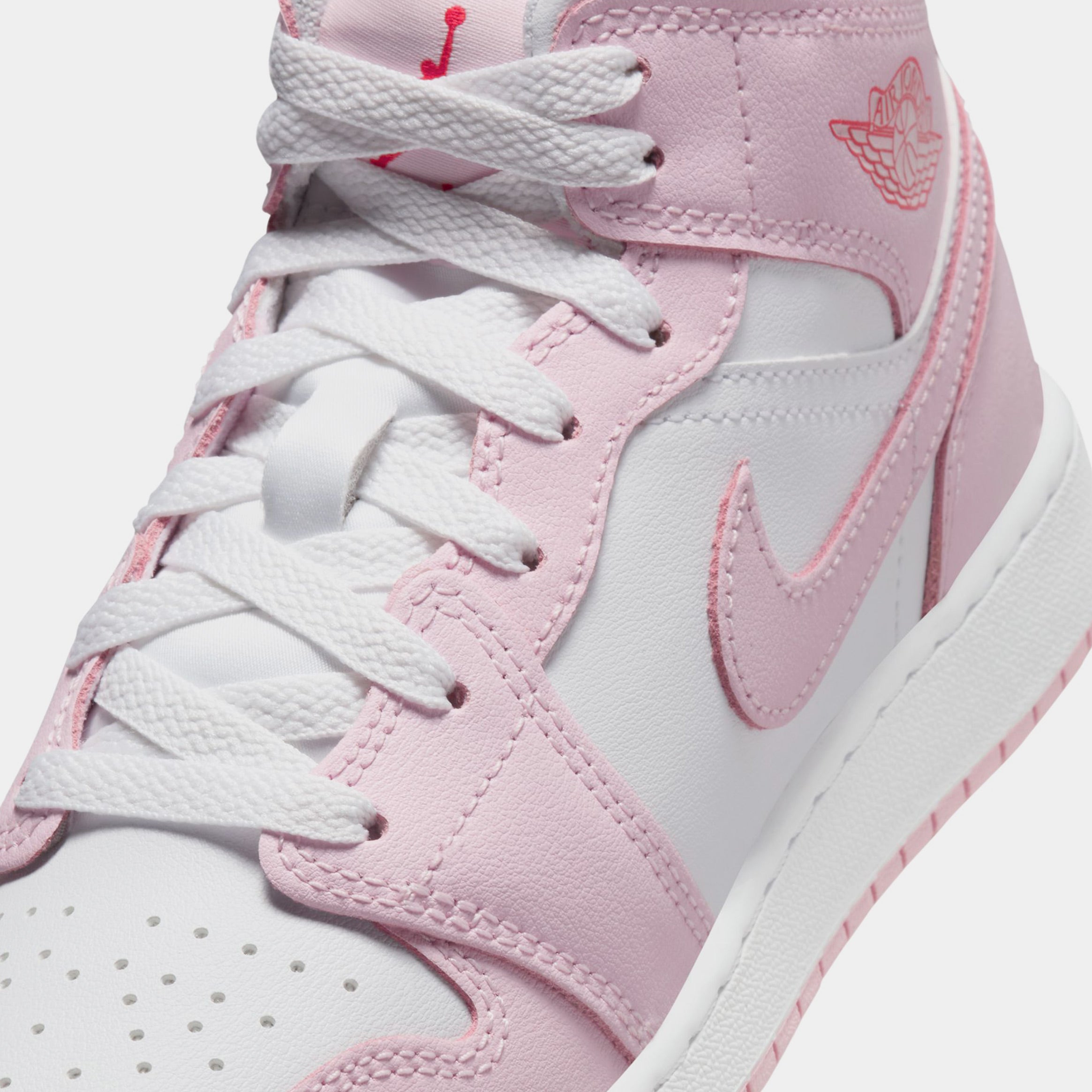 Air Jordan 1 Mid Pink Foam Grade School Lifestyle Shoes (Pink Foam/White/Fire Red)
