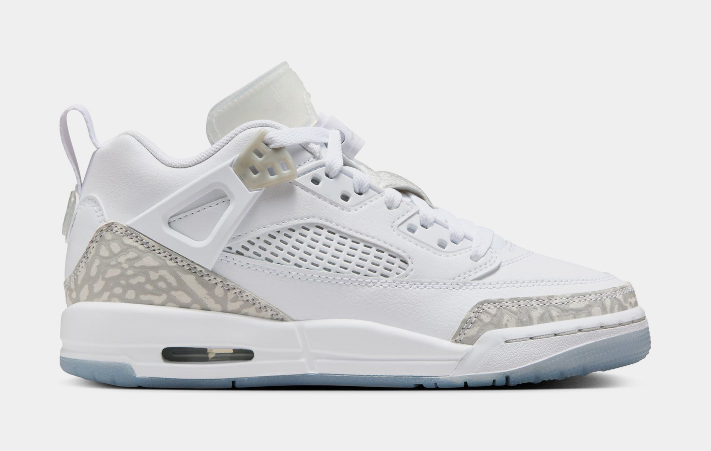 Spizike Low Grade School Basketball Shoes (White/Metallic Silver/Barely Blue/Neutral Grey)