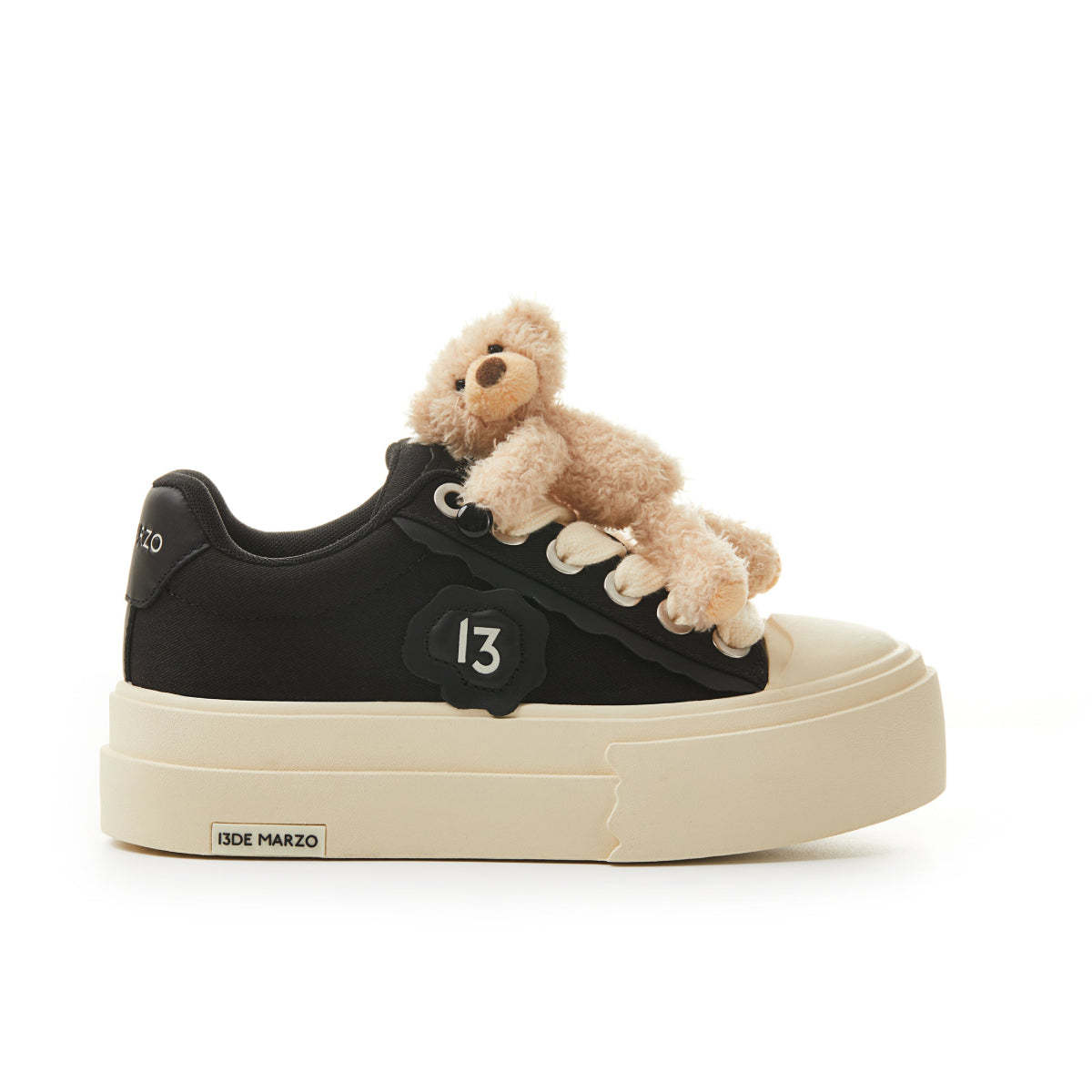 13De Marzo Thick-Soled Patch Canvas Sneaker Black