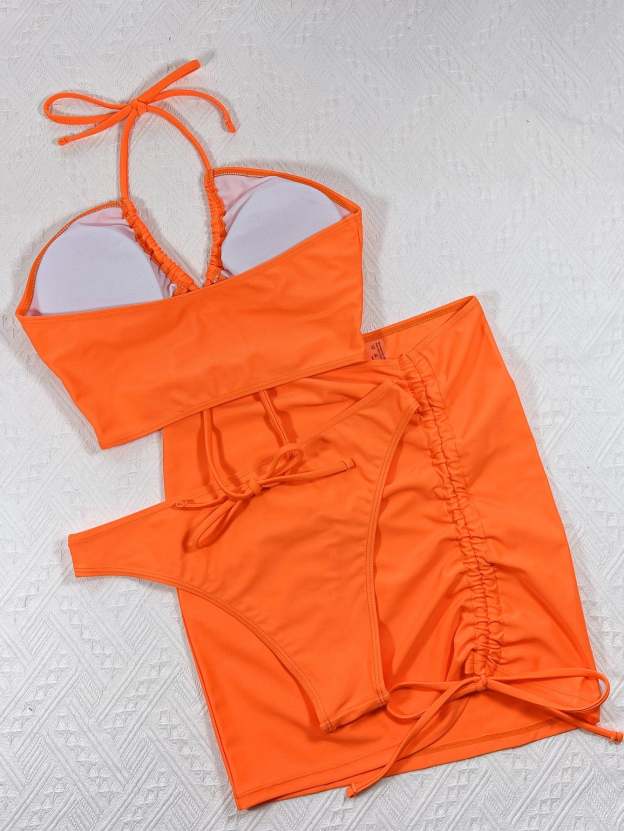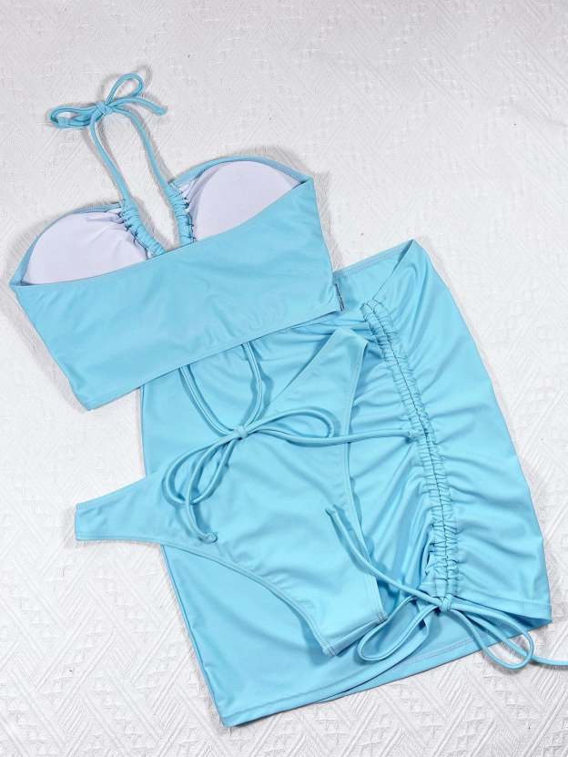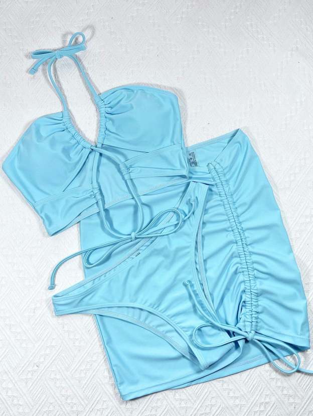 3pack Cut-out Lace Up Bikini Swimsuit & Beach Skirt