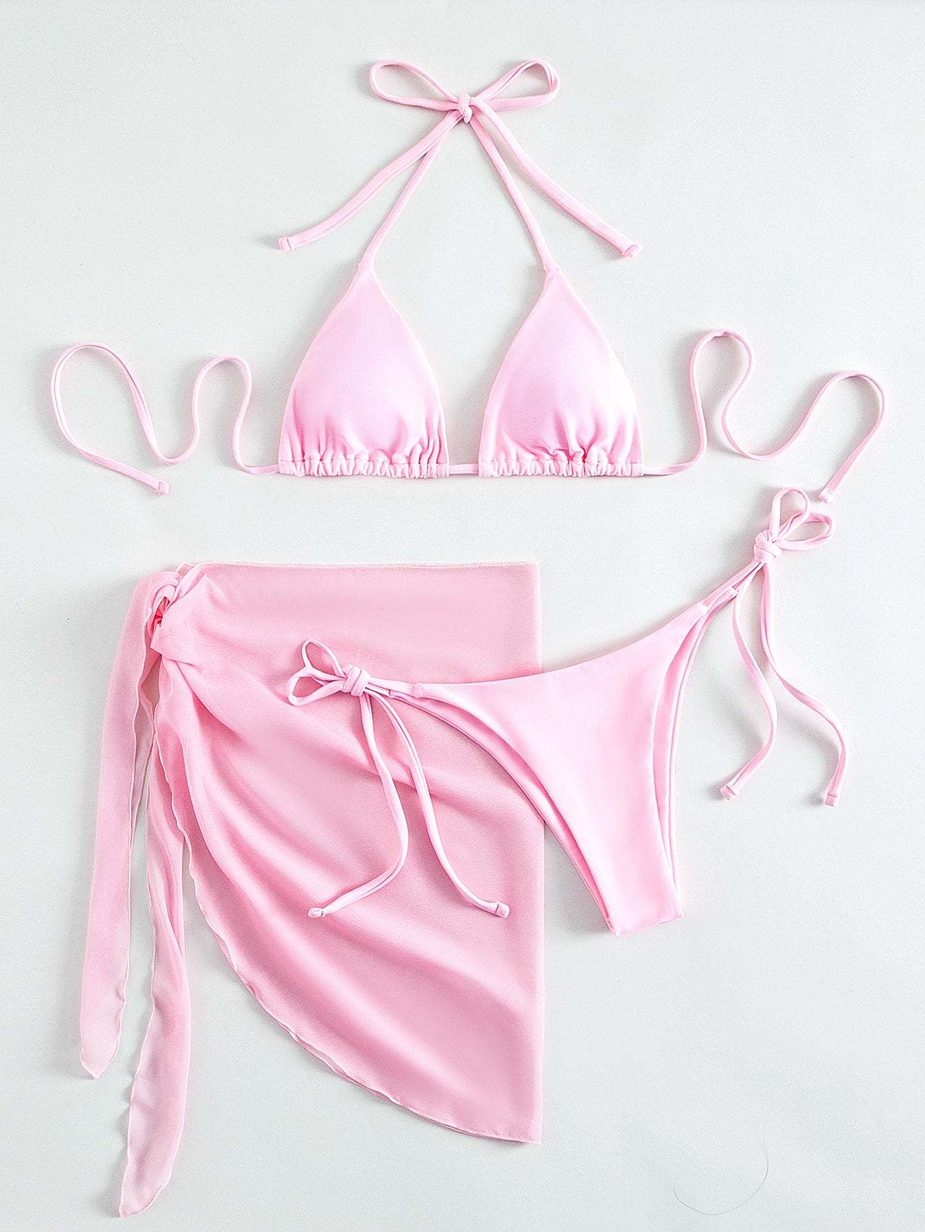3pack Drawstring Bikini Swimsuit & Beach Skirt