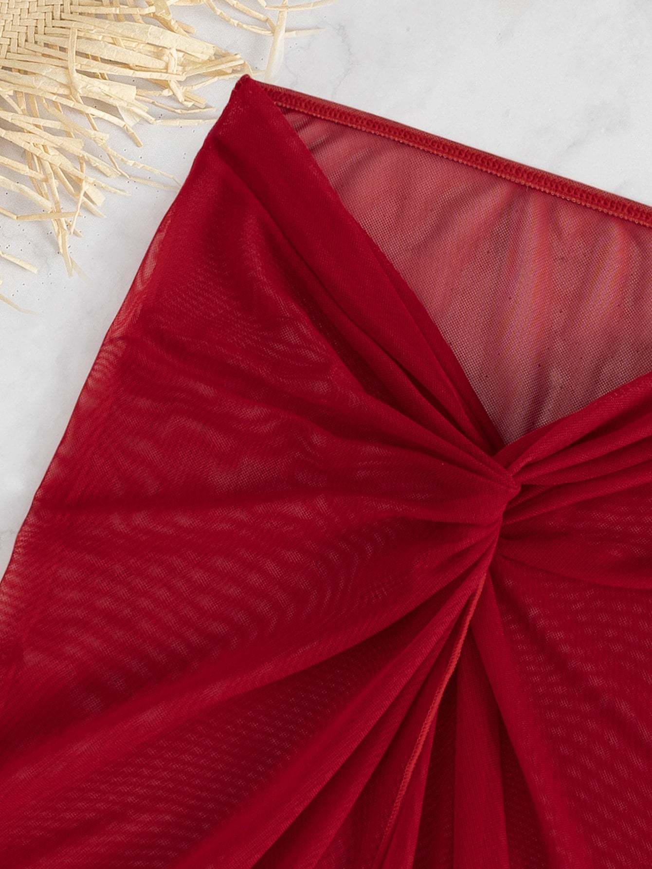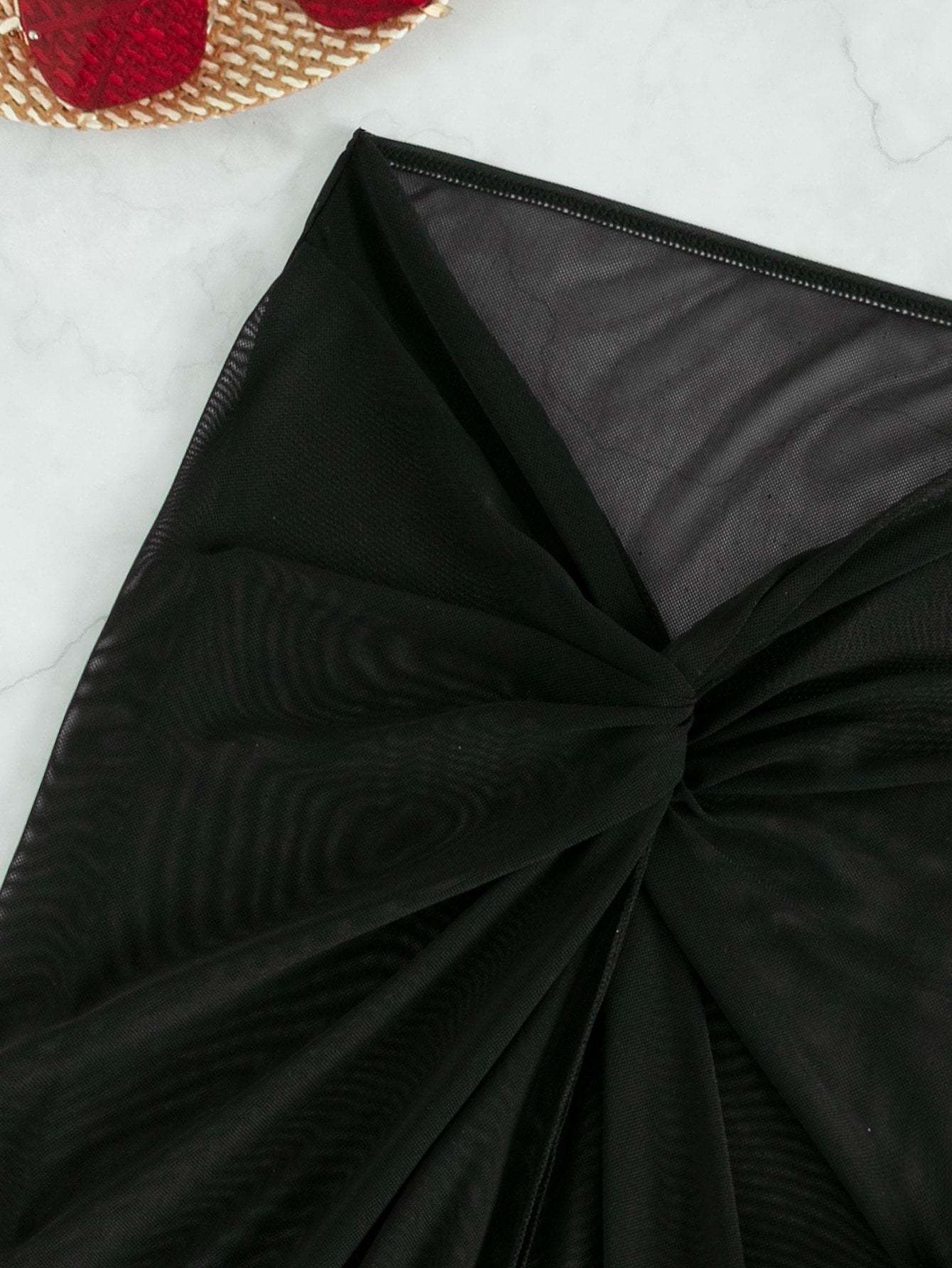 3pack Plain Bandeau Bikini Swimsuit & Beach Skirt