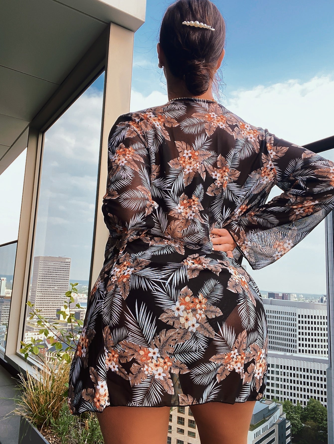 3pack Random Tropical Print High Waist Bikini Swimsuit & Kimono