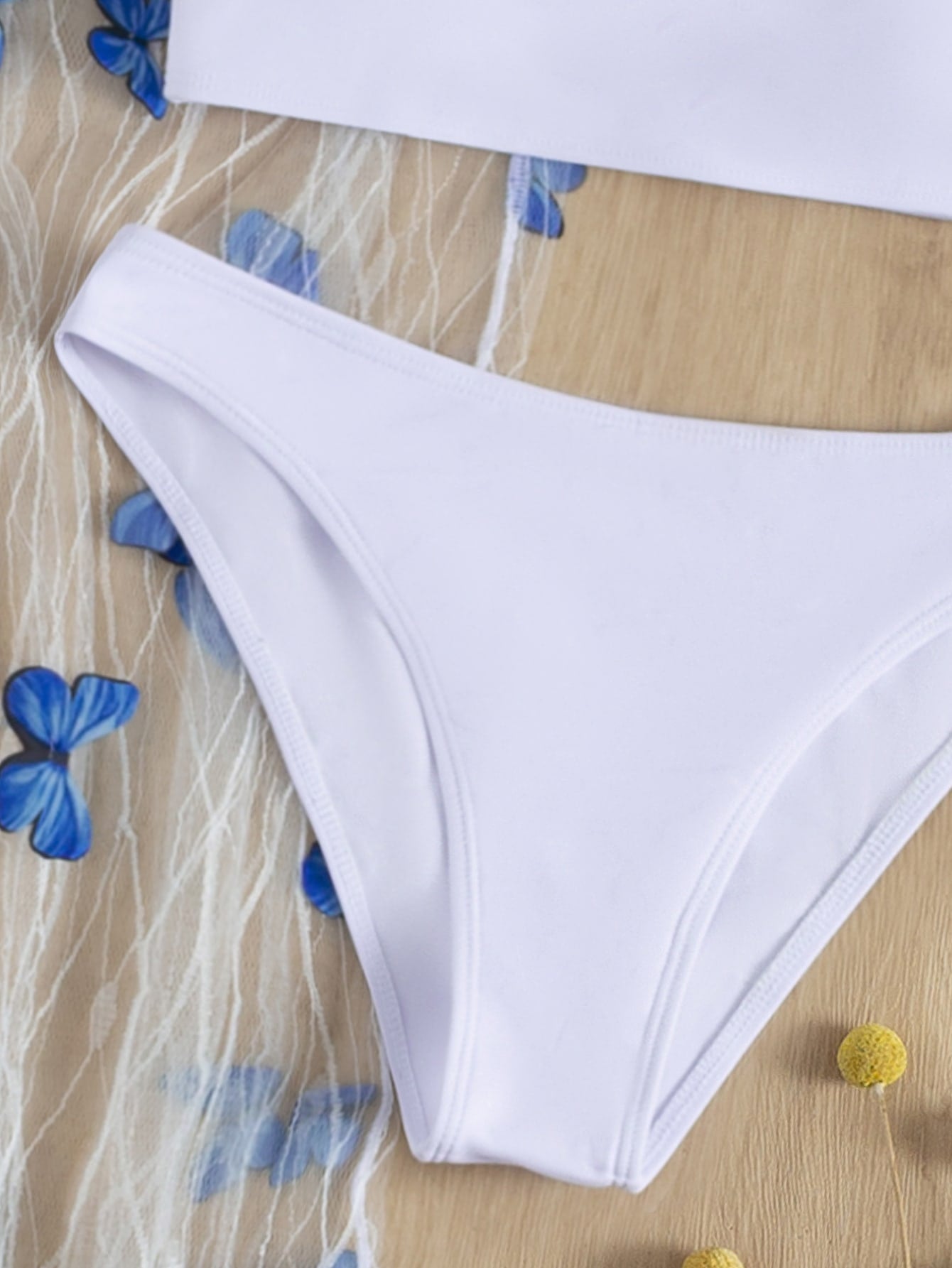 3pack Solid Bikini Swimsuit & Appliques Mesh Cover Up