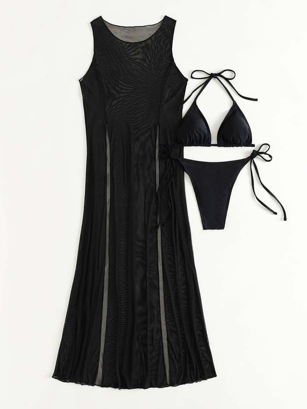 3pack Triangle Thong Bikini Swimsuit With Cover Up