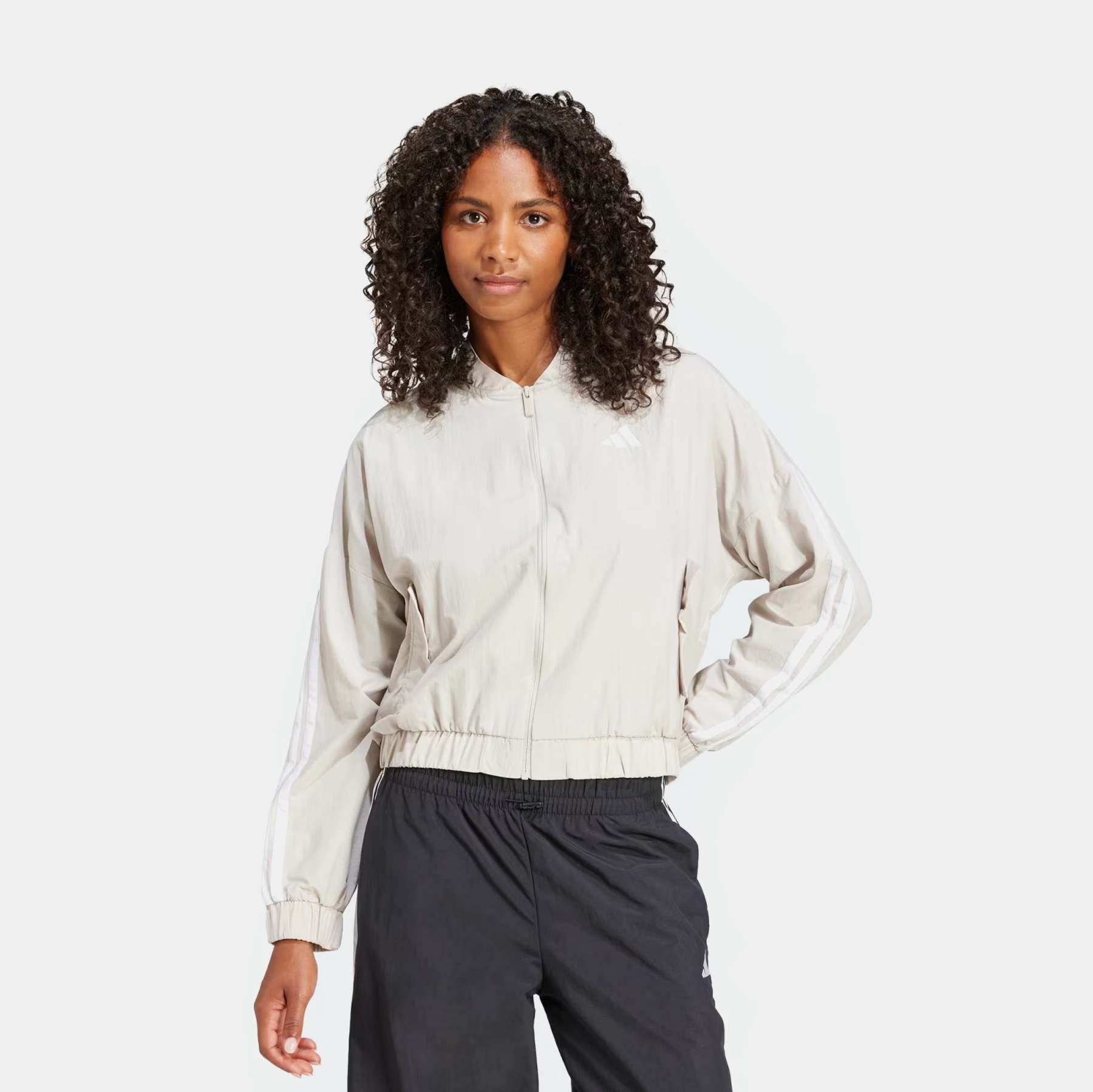 3 Stripes Woven Bomber Womens Jacket (Beige/White)
