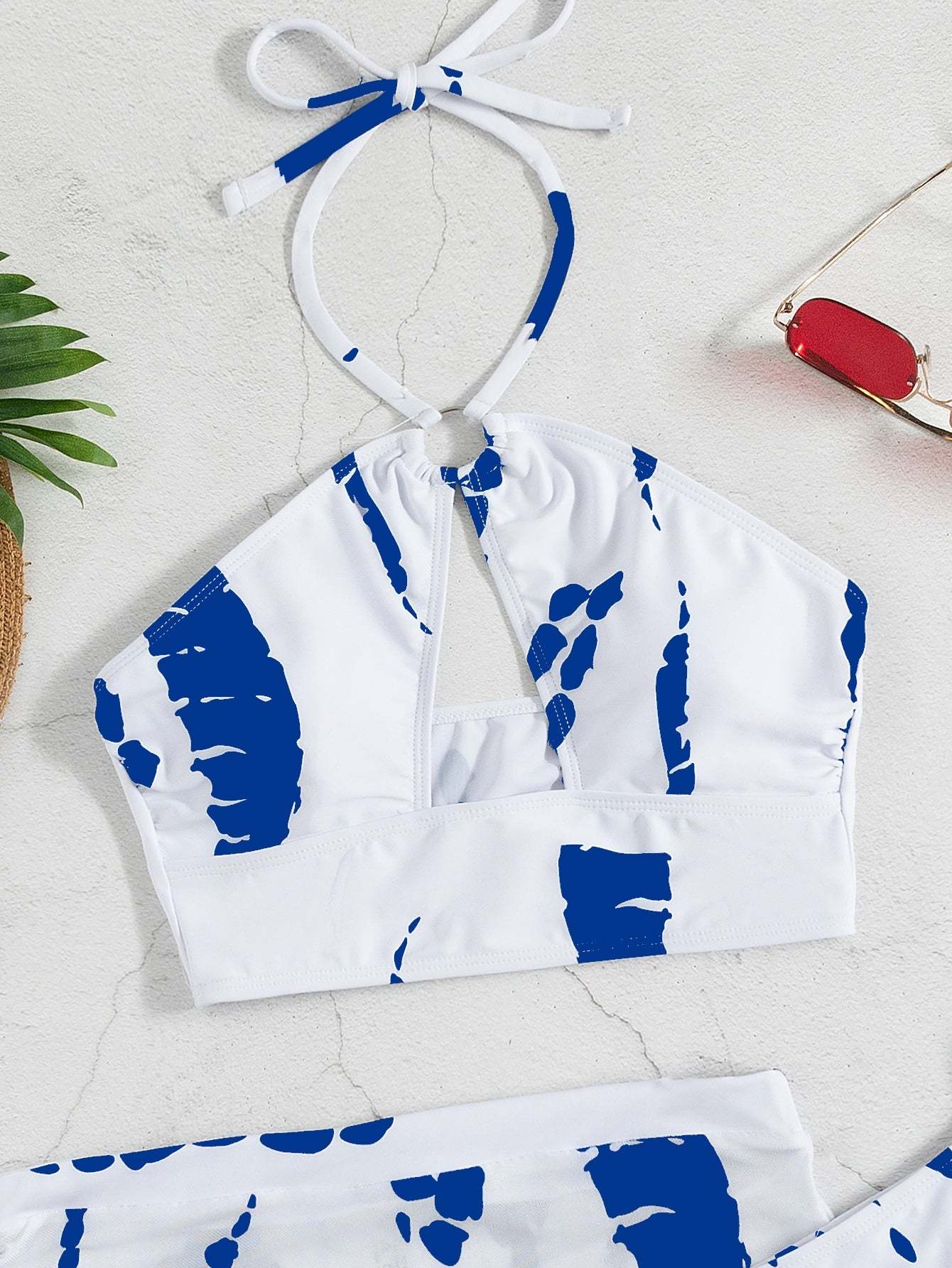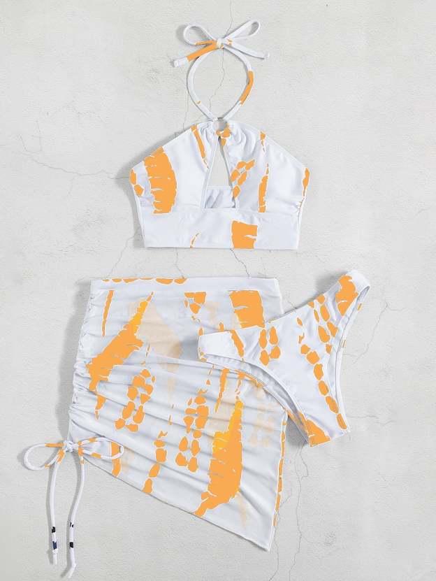 Allover Print Ring Linked Bikini Swimsuit With Beach Skirt