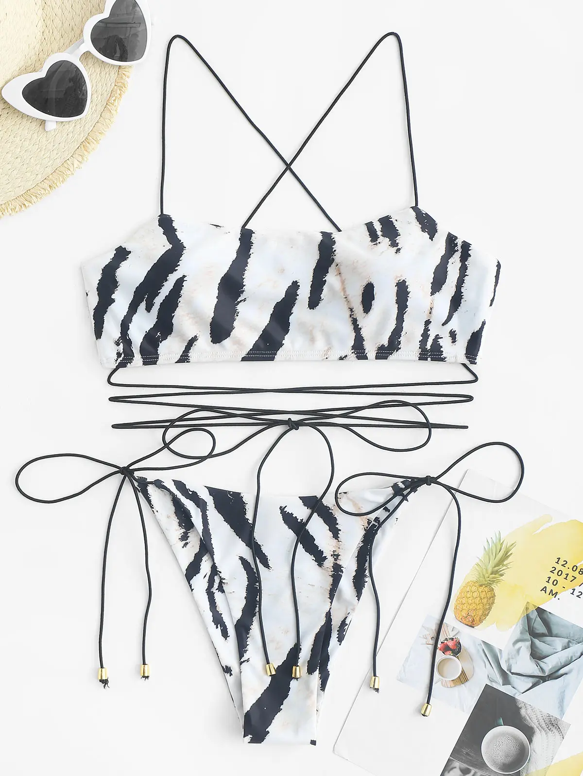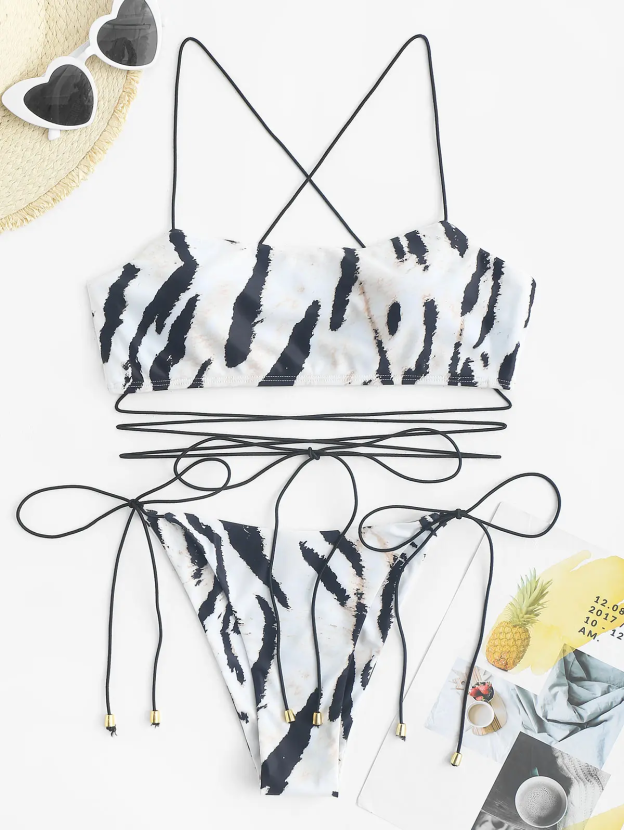 Animal Print Bungee Strap Floss Bikini Swimwear