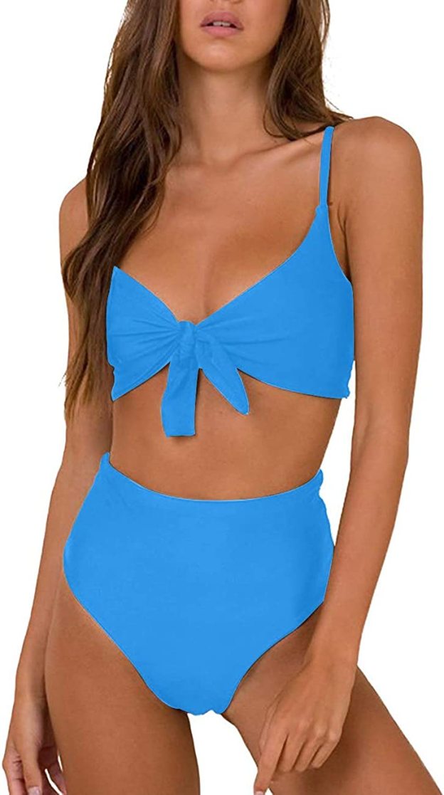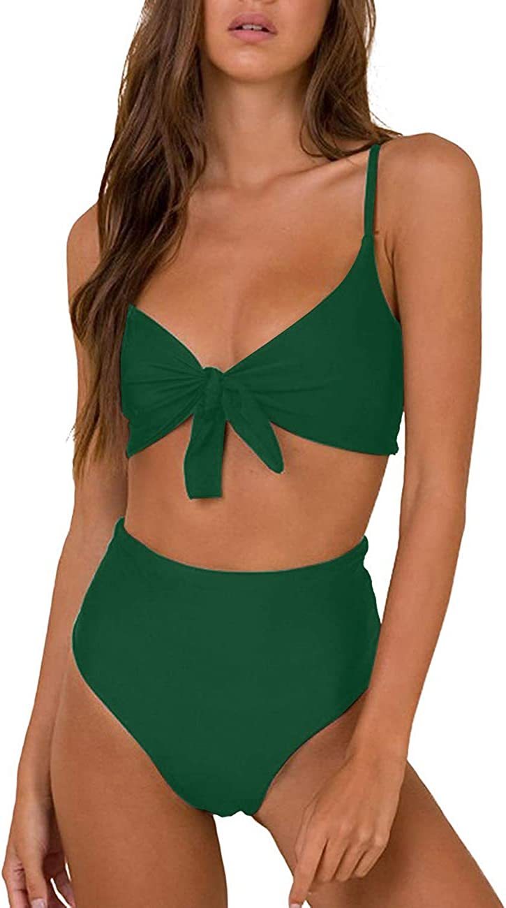 Womens High Waisted Bathing Suit Tie Knot Swimsuit For Women High Cut Bikini Set Padded Push Up