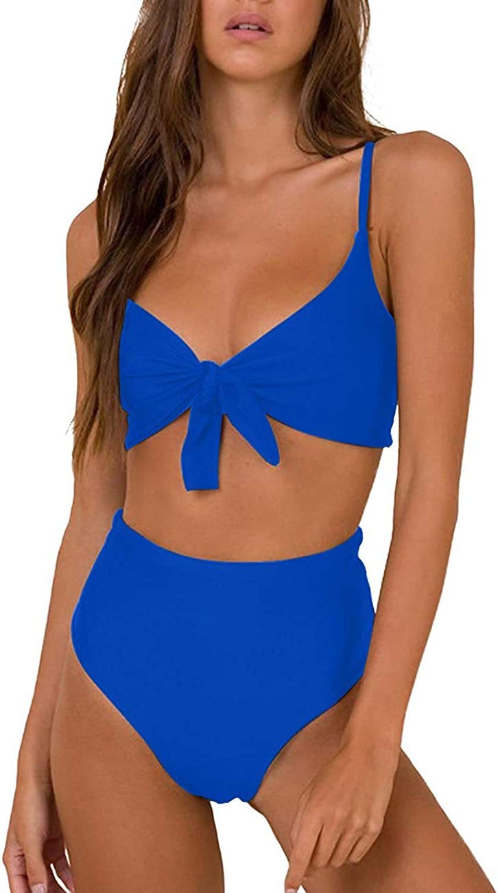 Bikini Swimwear Womens High Waisted Two Piece Swimsuit Tie Knot High Cut Bathing Suit for Women