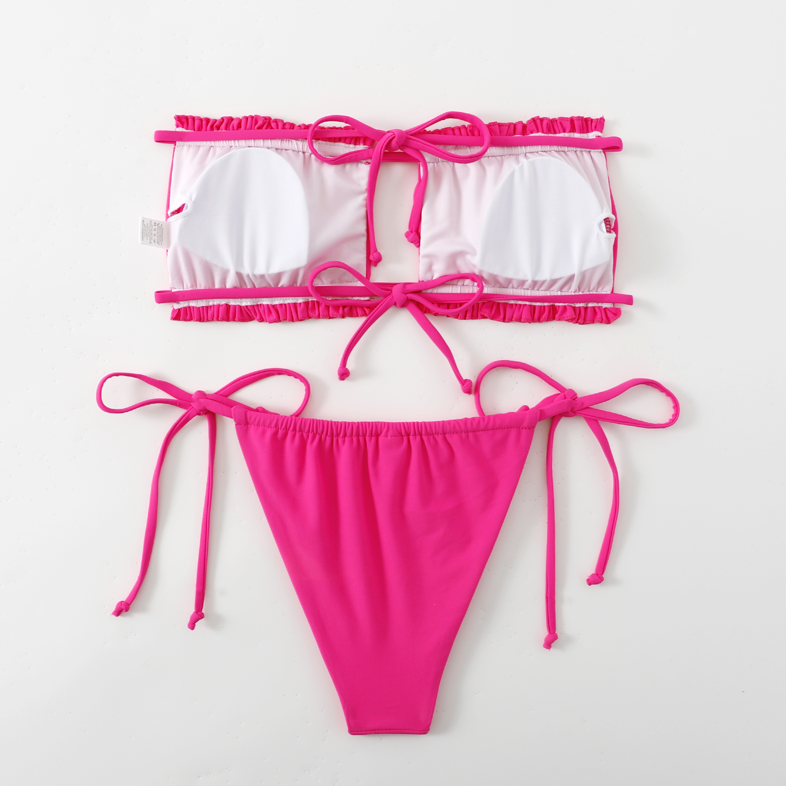 Cerdexon Women's Sexy Bikini Set Tie Bandeau Top Bathing Suit with Thong Bottom Swimsuits