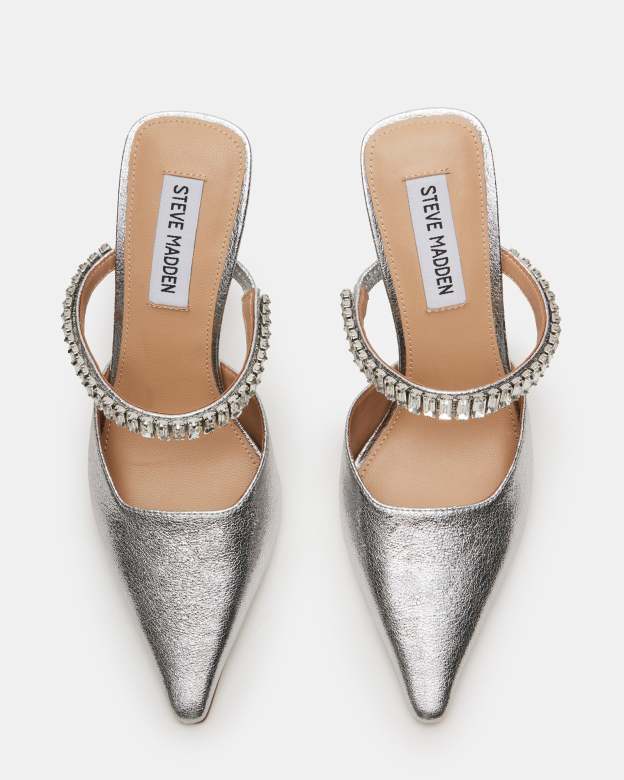 BRECKI SILVER LEATHER RHINESTONES