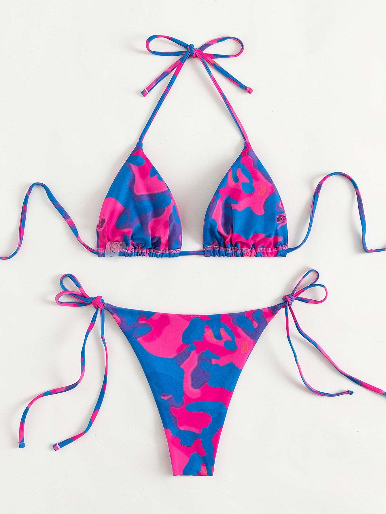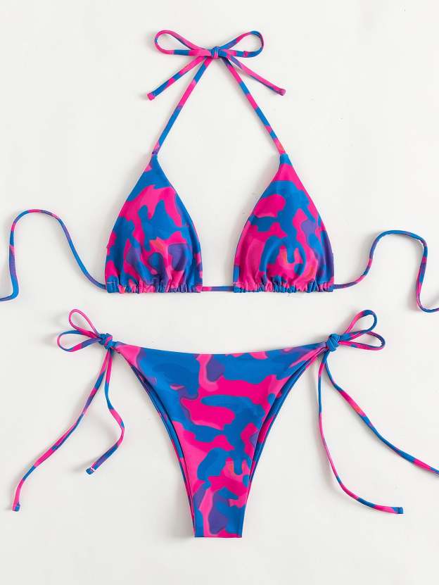 Camo Print Triangle Tie Side Bikini Swimsuit