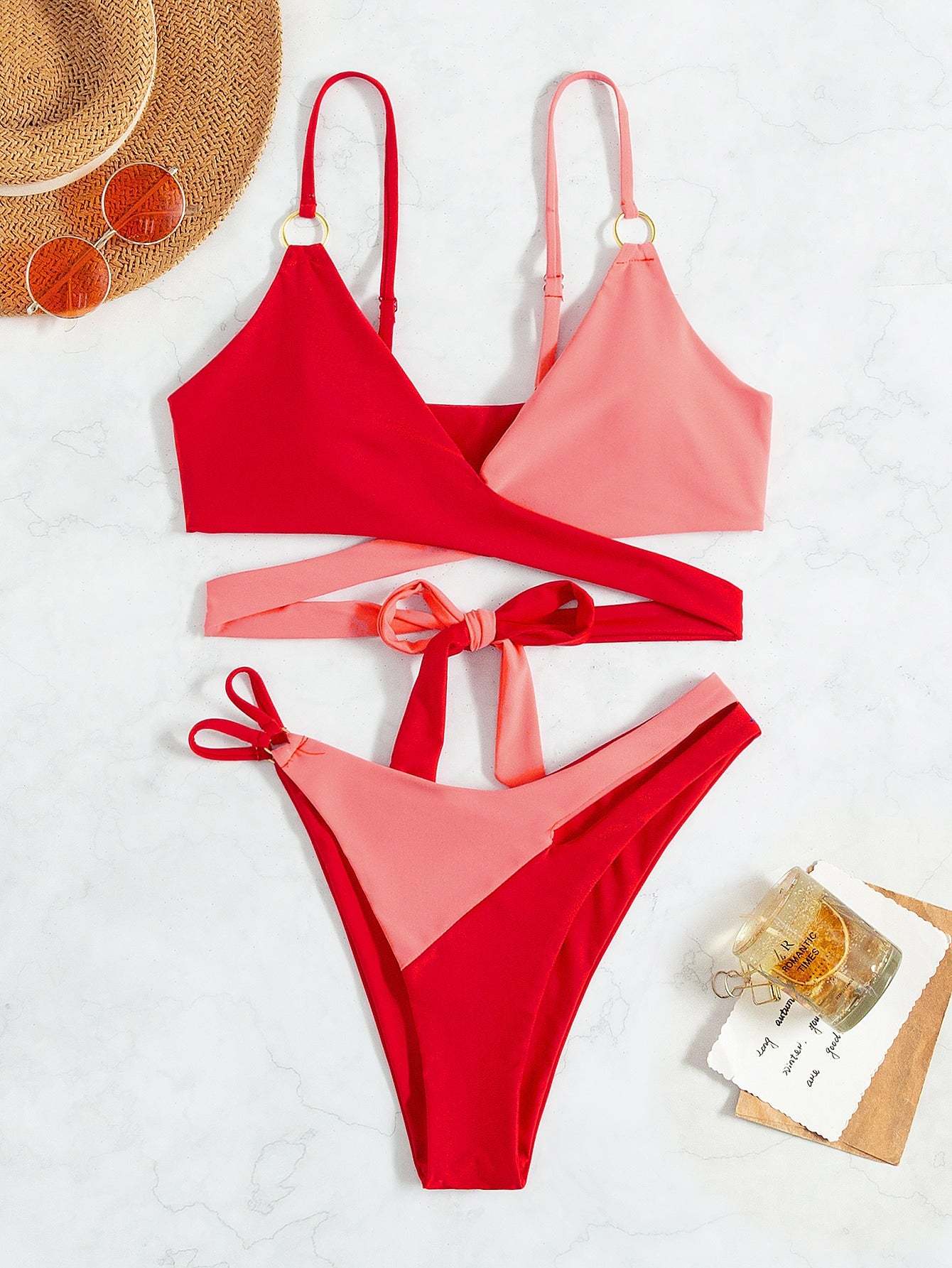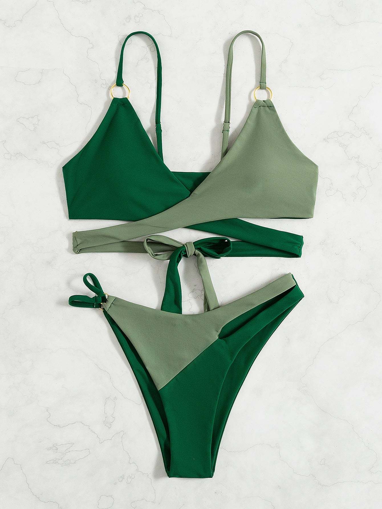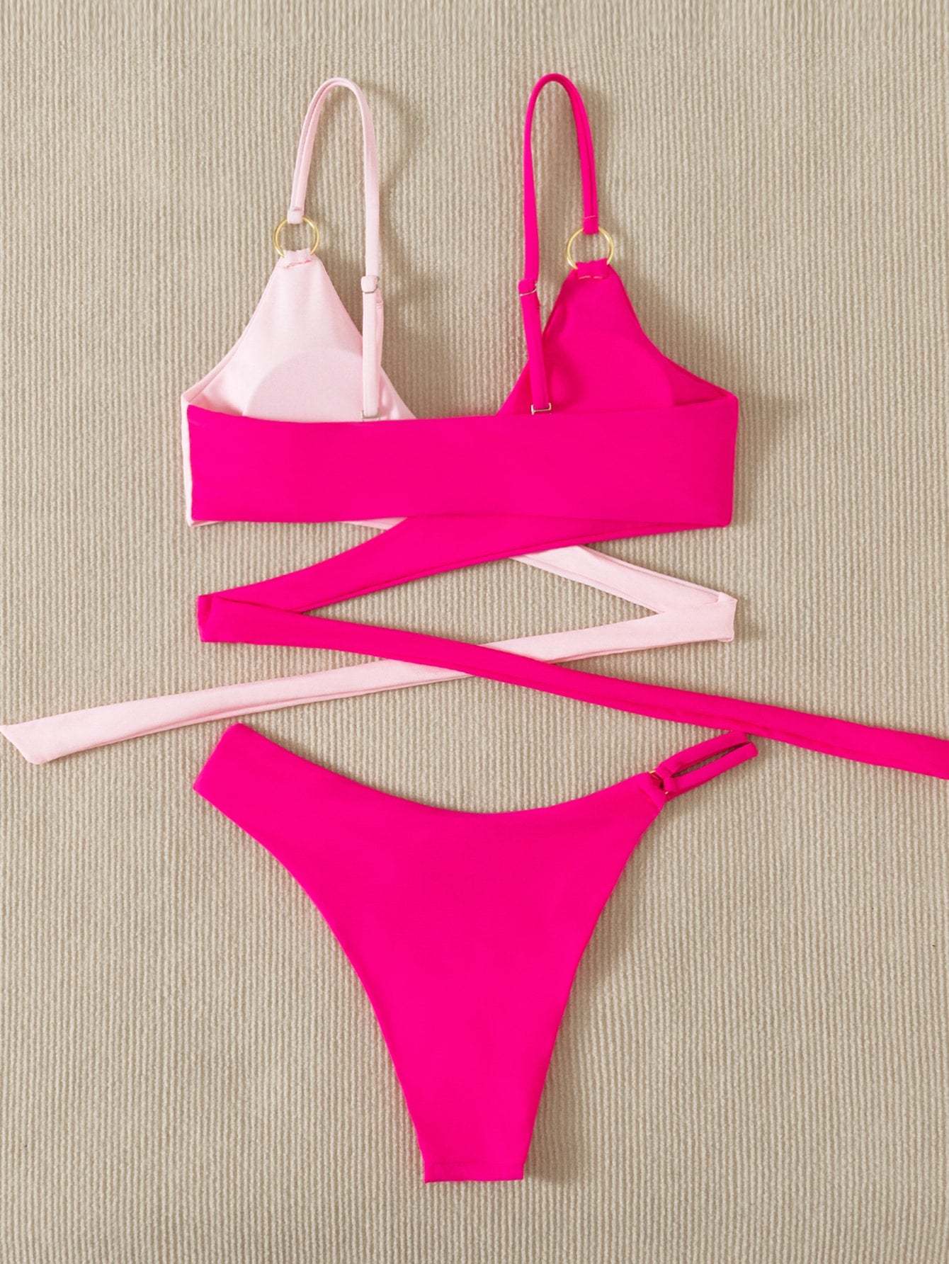 Color Block Wrap Bikini Swimsuit