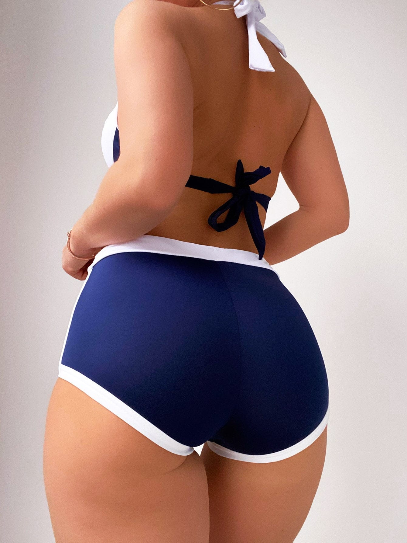 Colorblock Halter Push Up Bikini Swimsuit