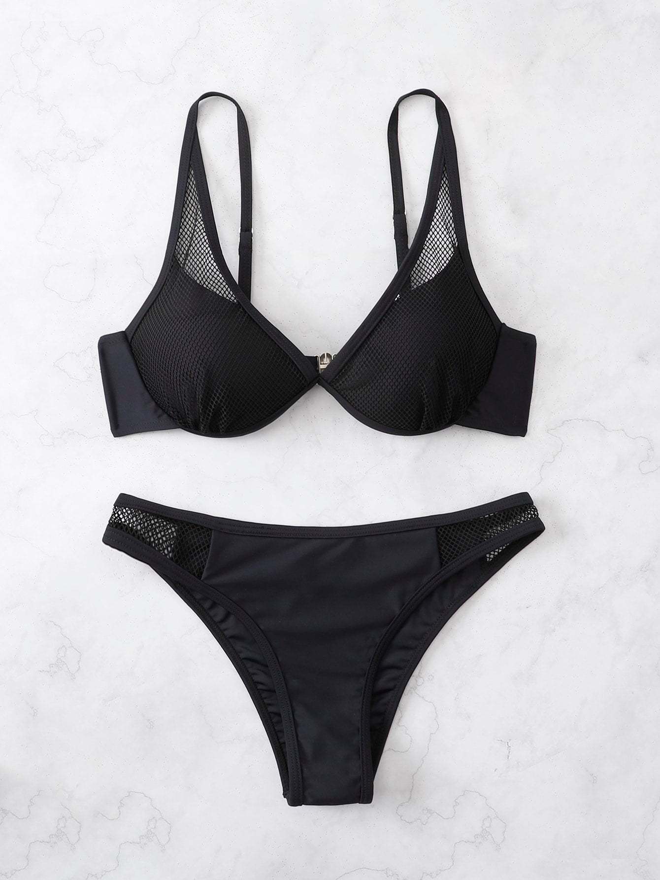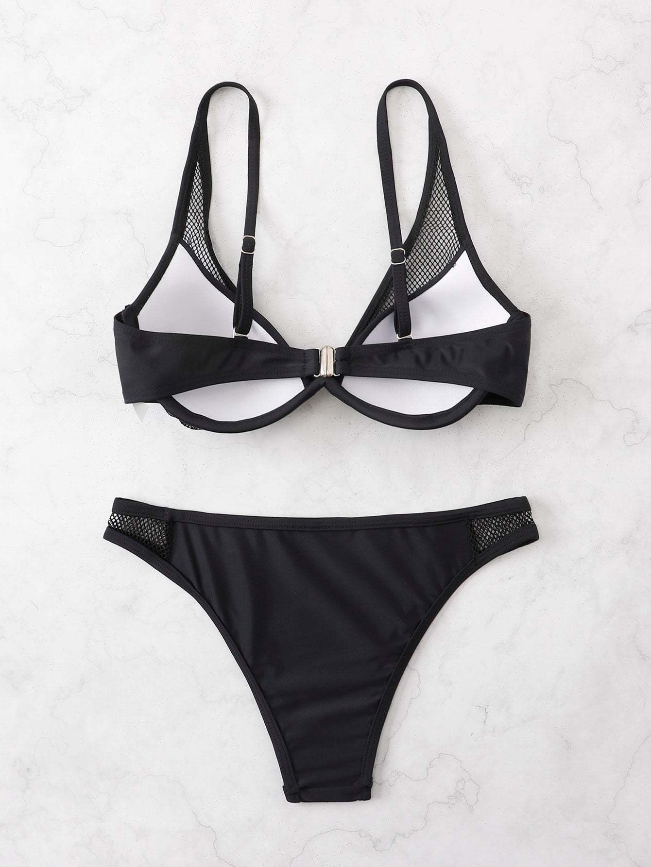 Contrast Mesh Underwire Bikini Swimsuit