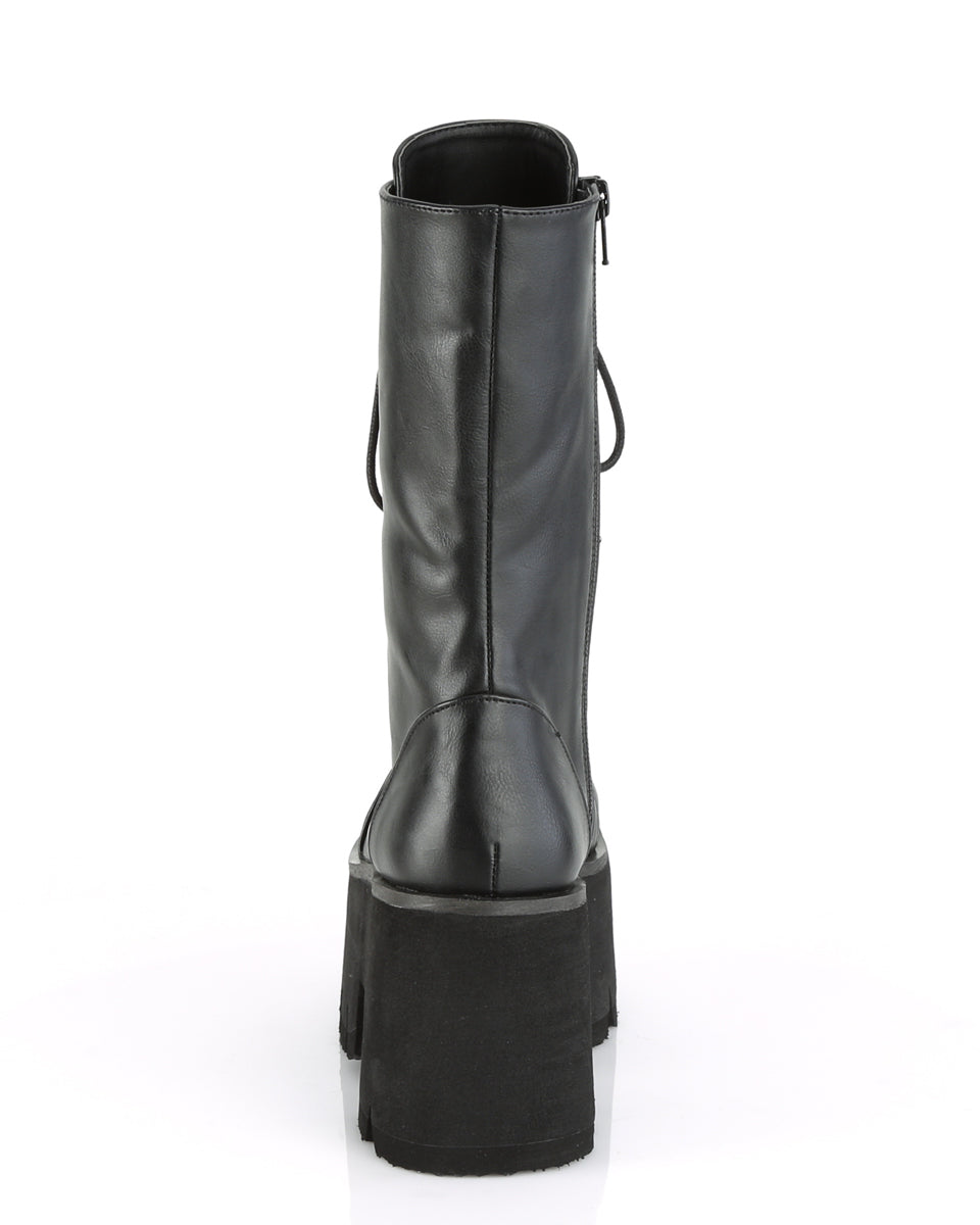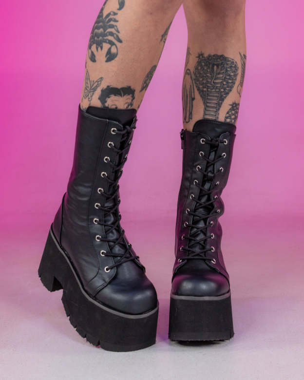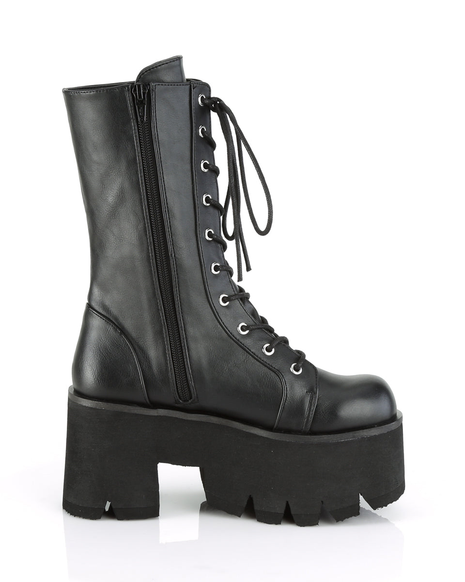 Demonia Ashes Black Lace-Up Mid-Calf Platform Boot