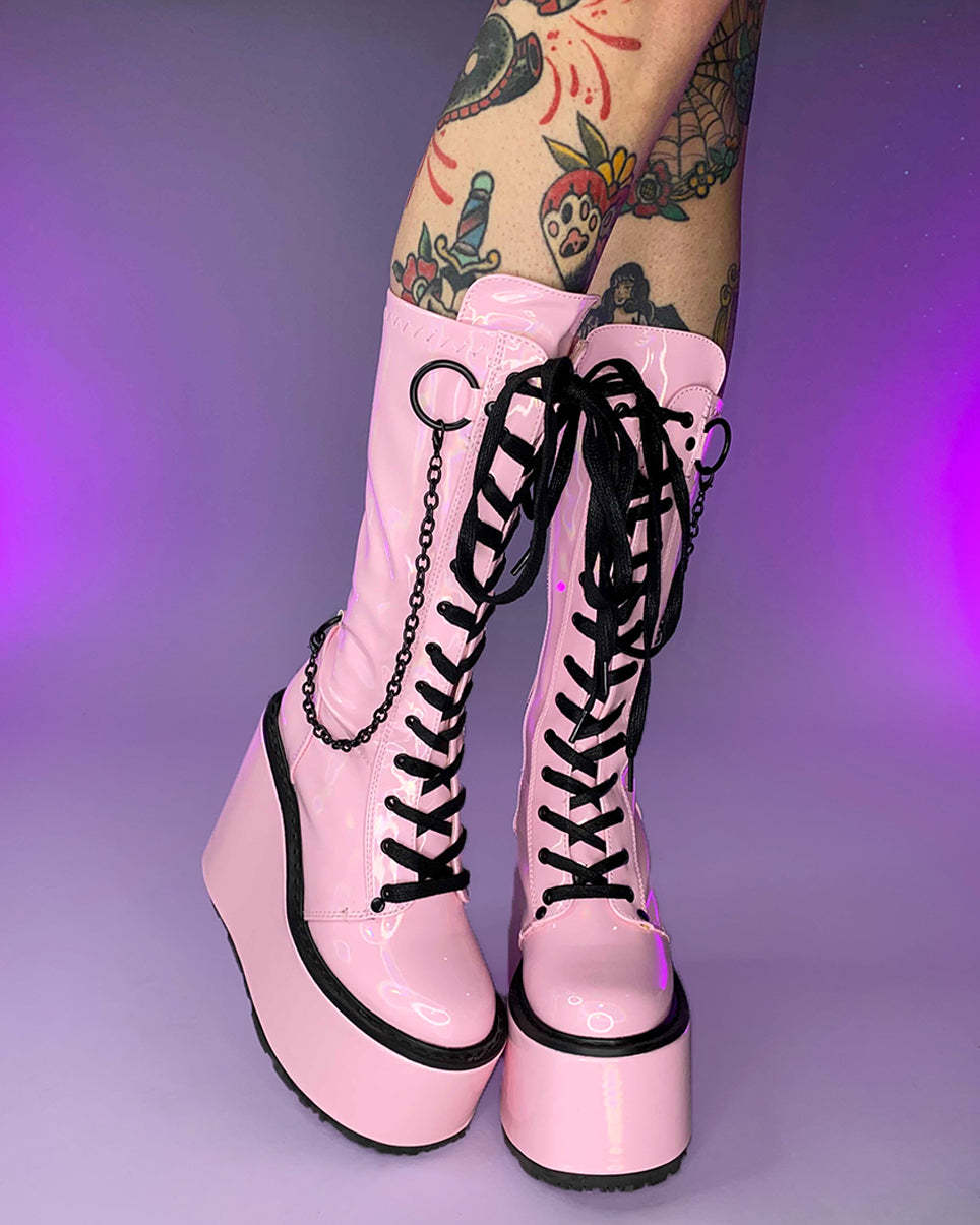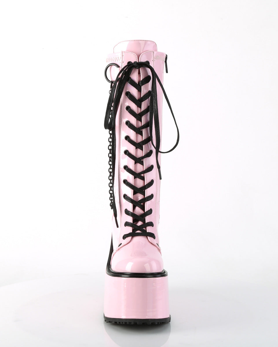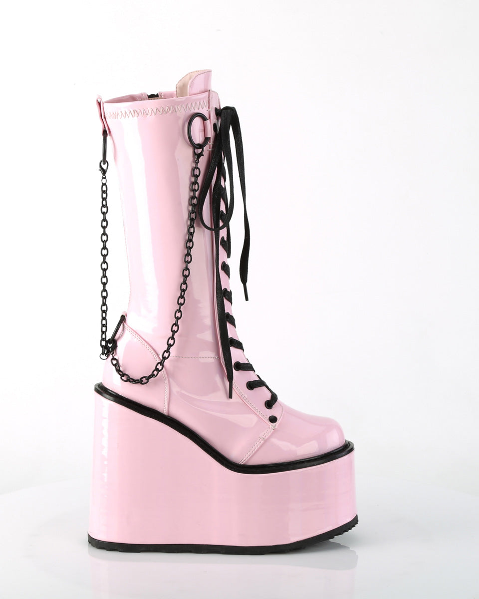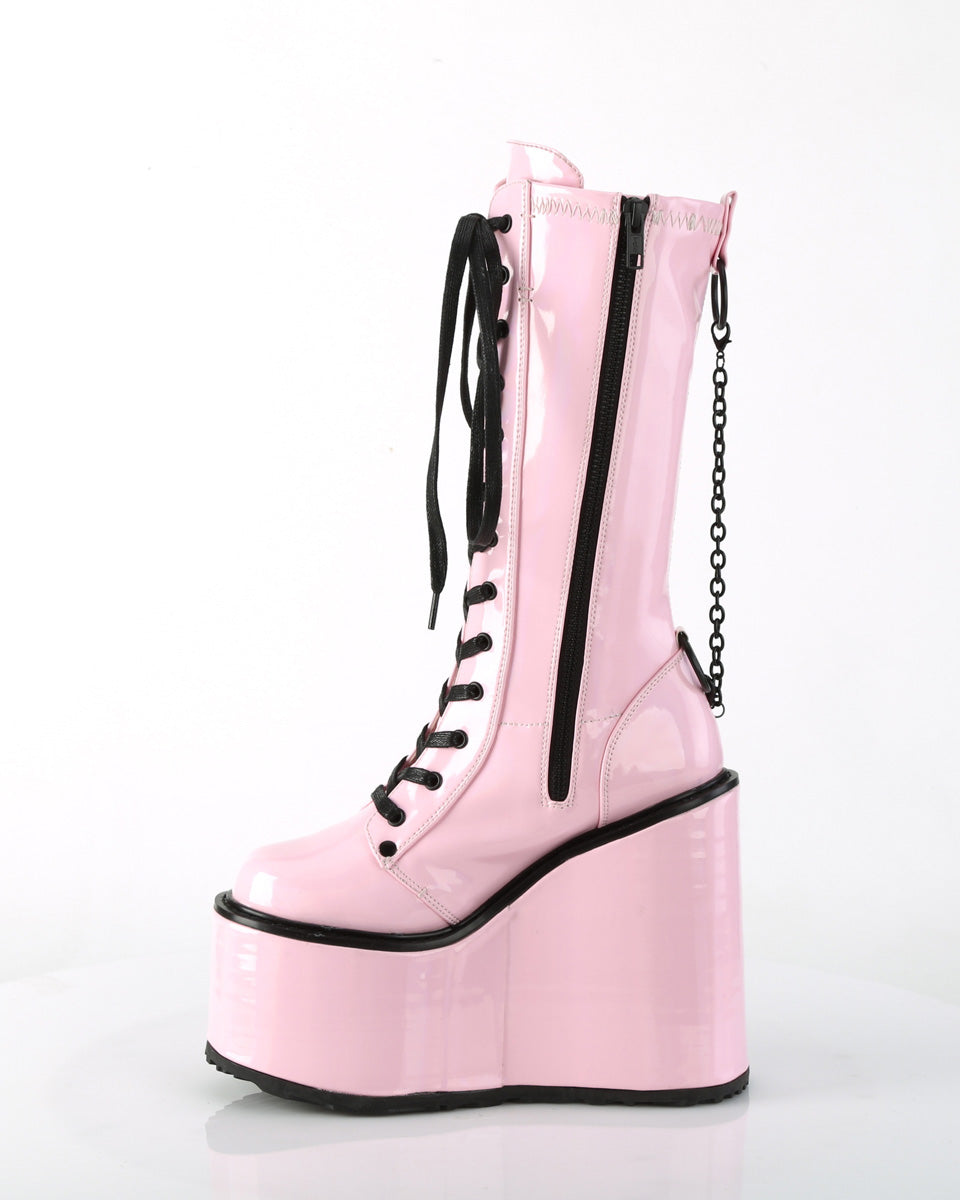 Demonia Swing Pink Holo Chain Knee-High Boots