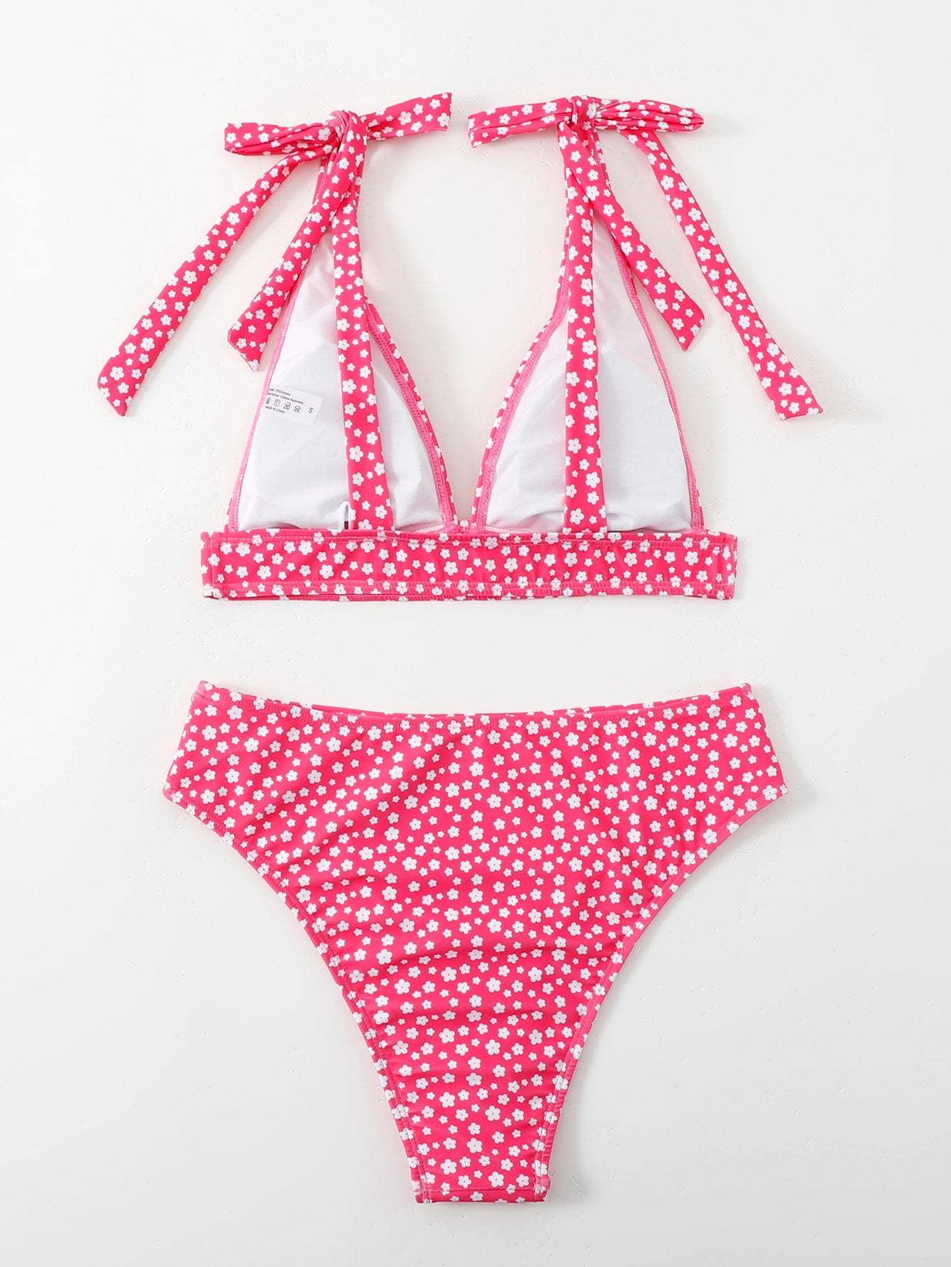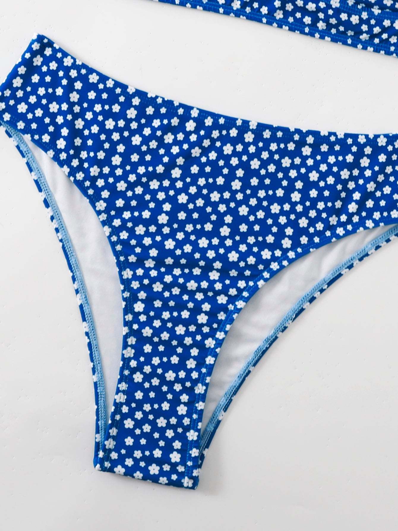 Ditsy Floral Print Knot Shoulder Bikini Swimsuit