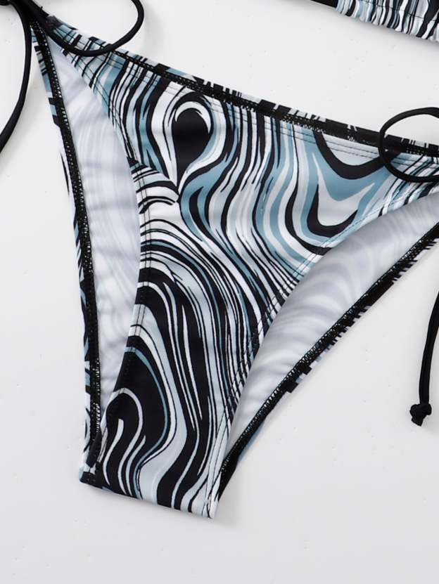 Fluid Pattern Halter Triangle Bikini Swimsuit
