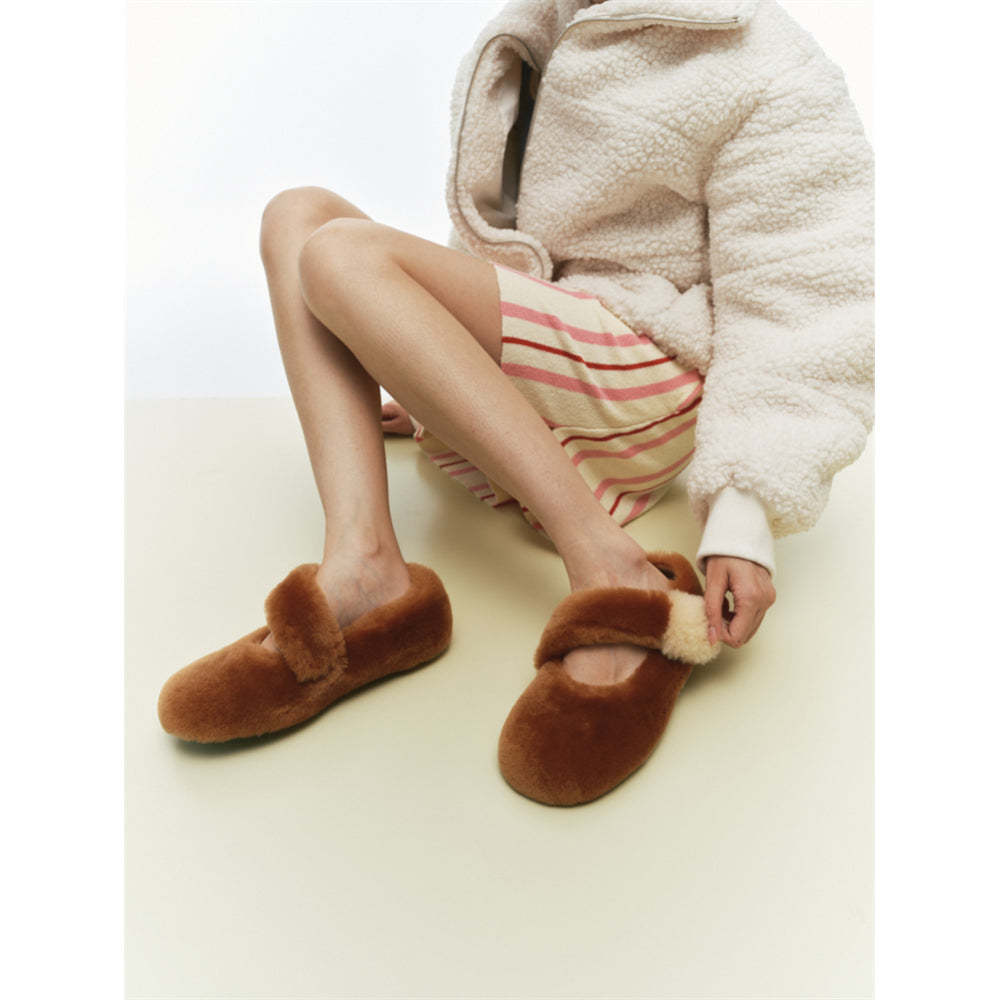 HALFAWAKE Wool Stripe Flat Fur Slip On Brown