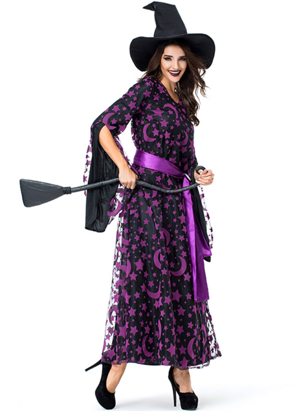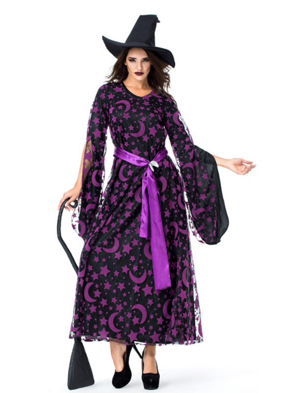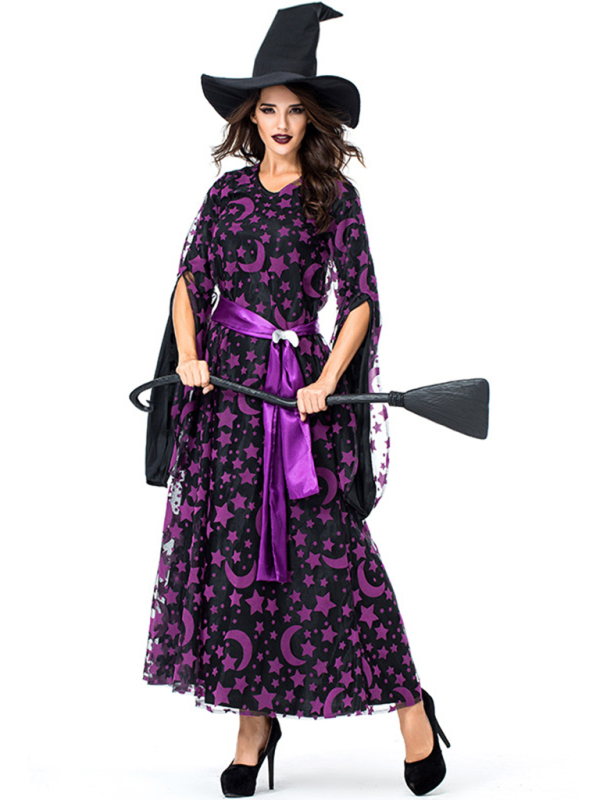 Halloween Costume Purple Star And Moon Magic Witch Witch Party Game Uniform