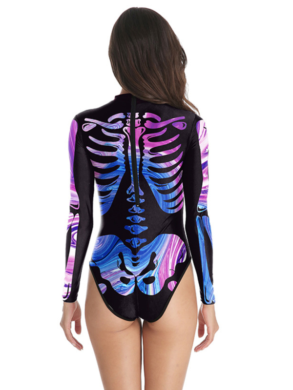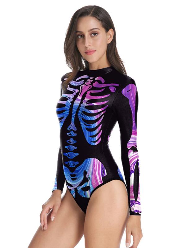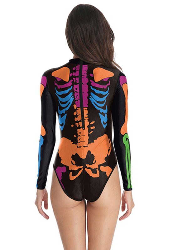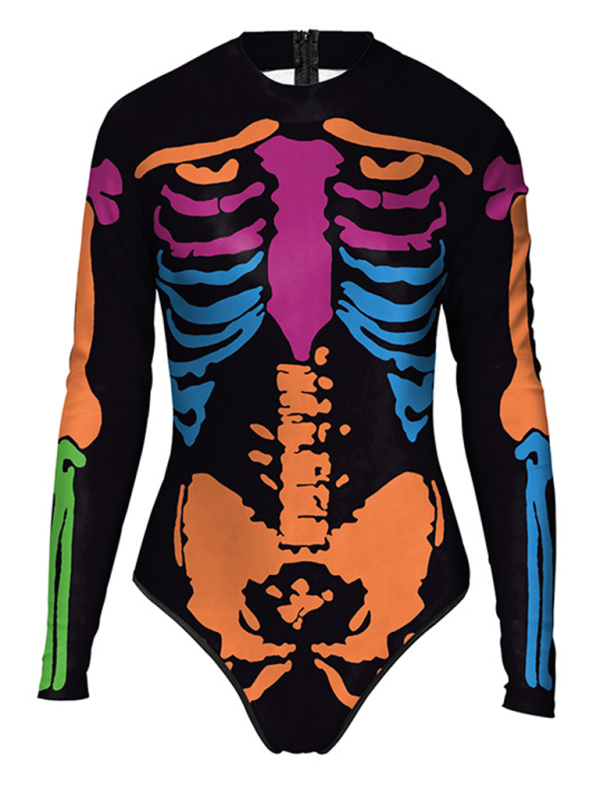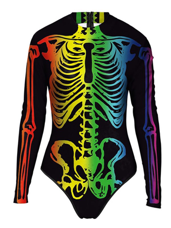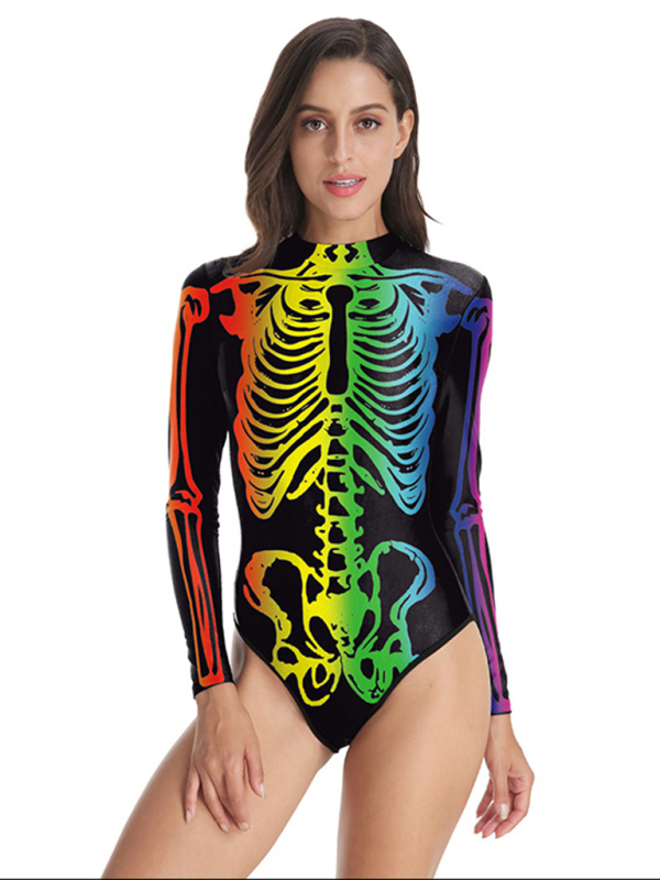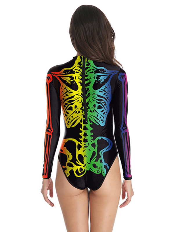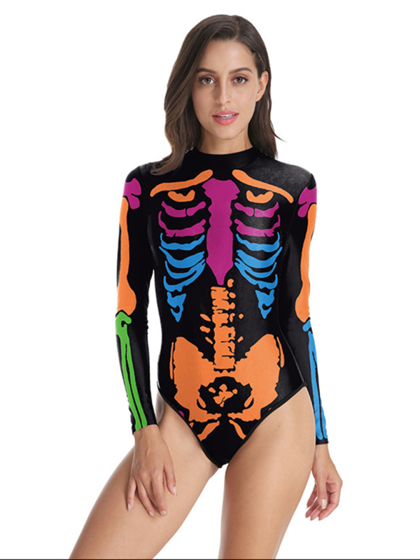 Halloween New Colorful Skeleton Print Ladies Tight Body